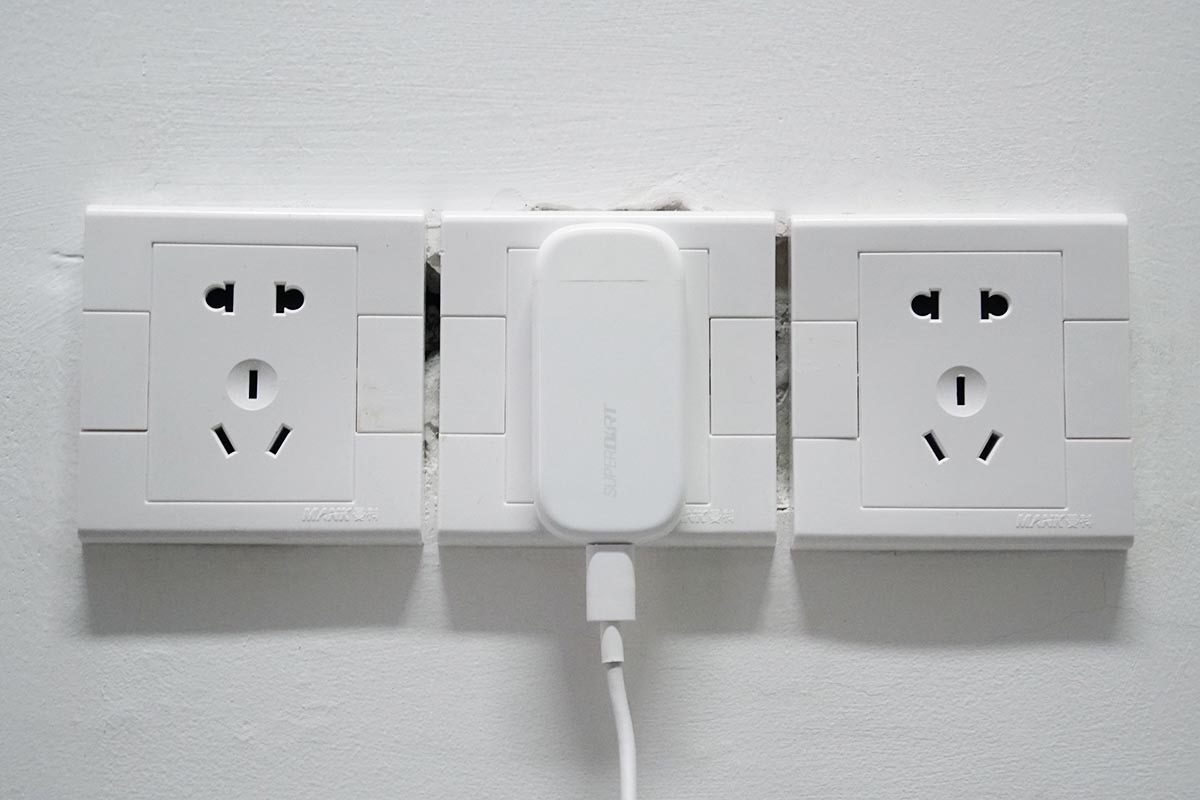搭配插座使用,如果使用的是单排插座的话对于左右两侧的插孔完全不会碍事,四周空间很大。