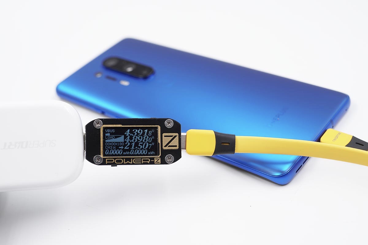 使用充电器为一加8 Pro充电,功率为4.39V 4.89A 21.50W。