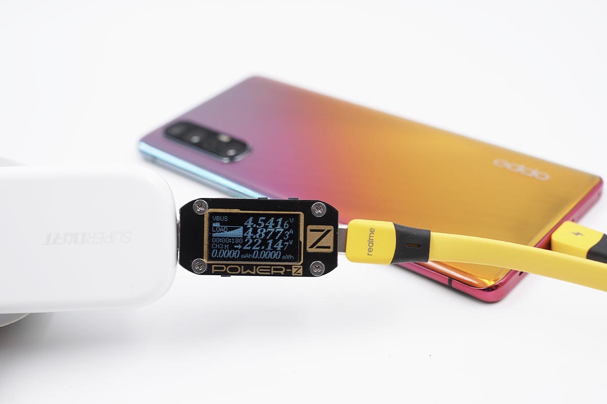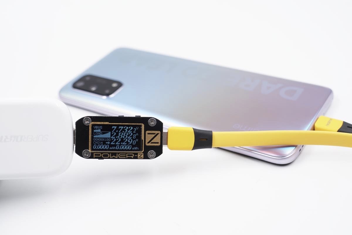以上测试使用的都是标配原装线材,实测换成其他100W双USB-C线材同样可以触发SuperVOOC闪充,对于线材的兼容性更好一些。