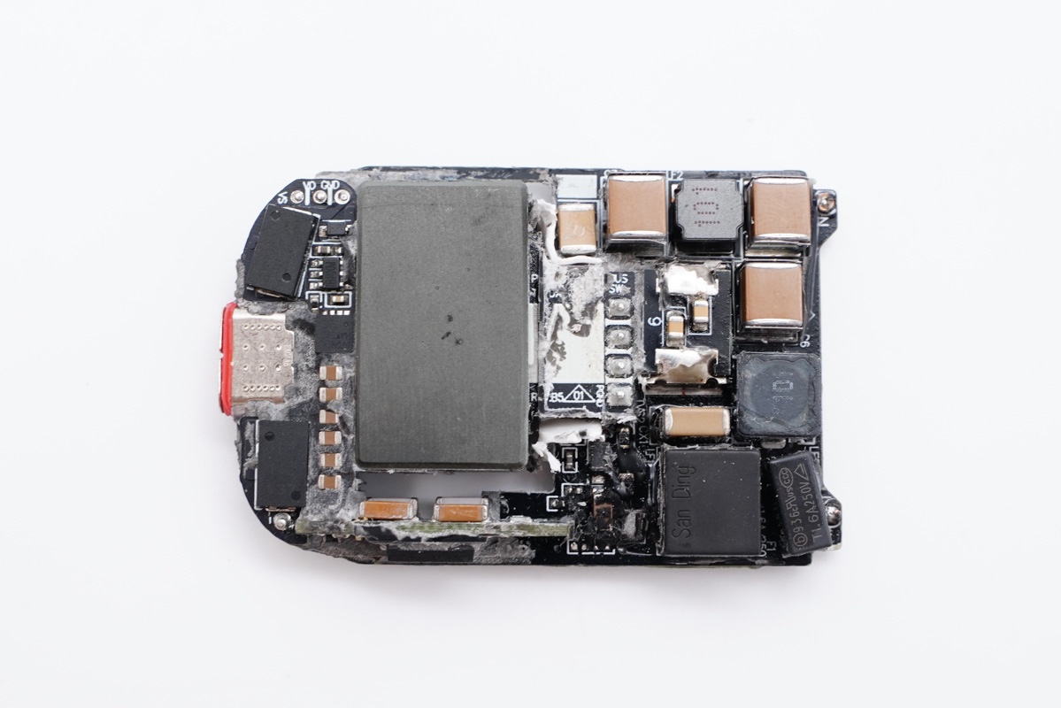 这因为如此才可以让充电器变的如此轻薄,关于这款充电器具体内部构造的介绍可以关注充电头网后面推出的拆解报告。