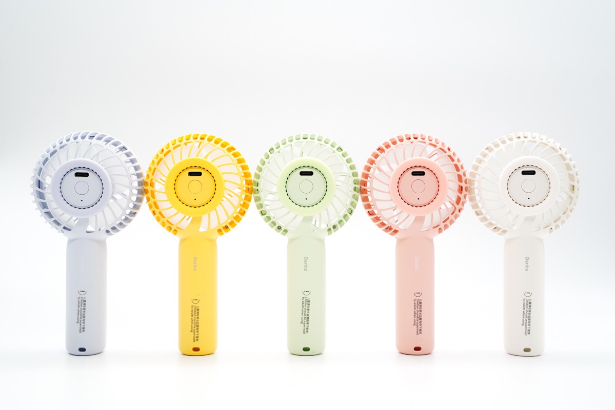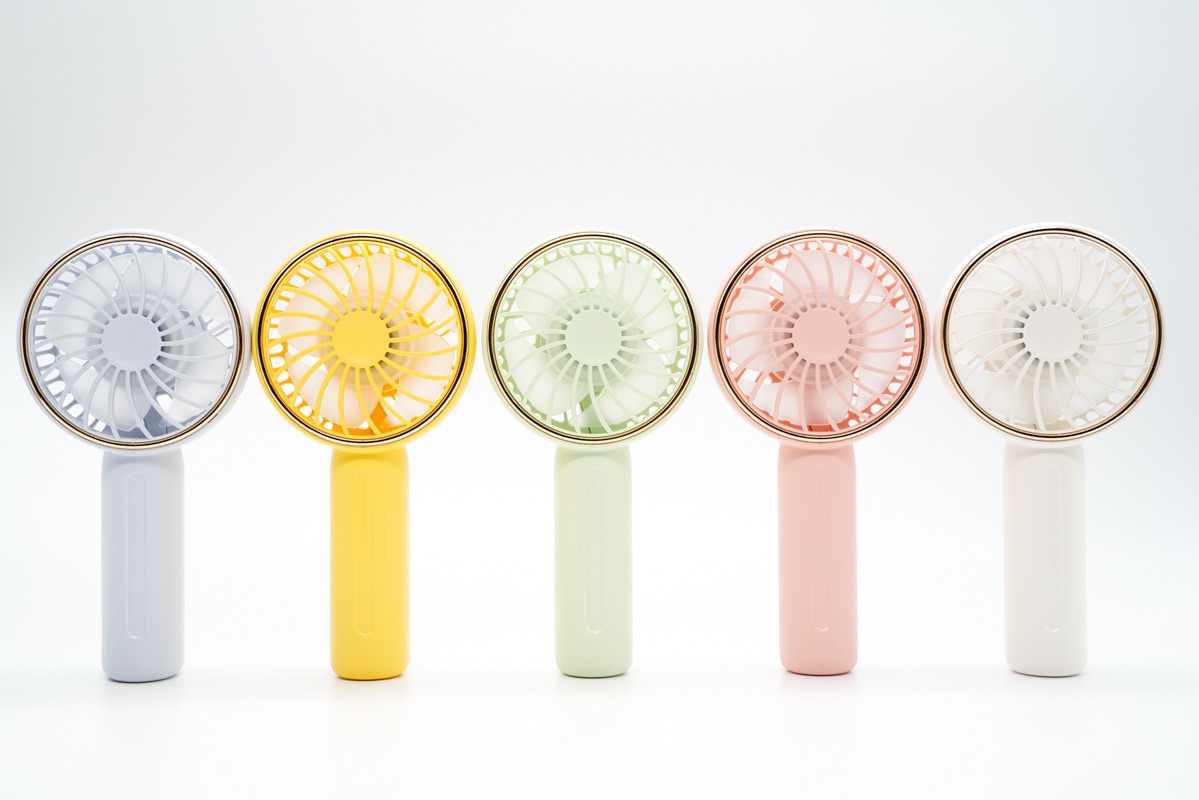五款不同风格不同配色Mini小风扇的正面。