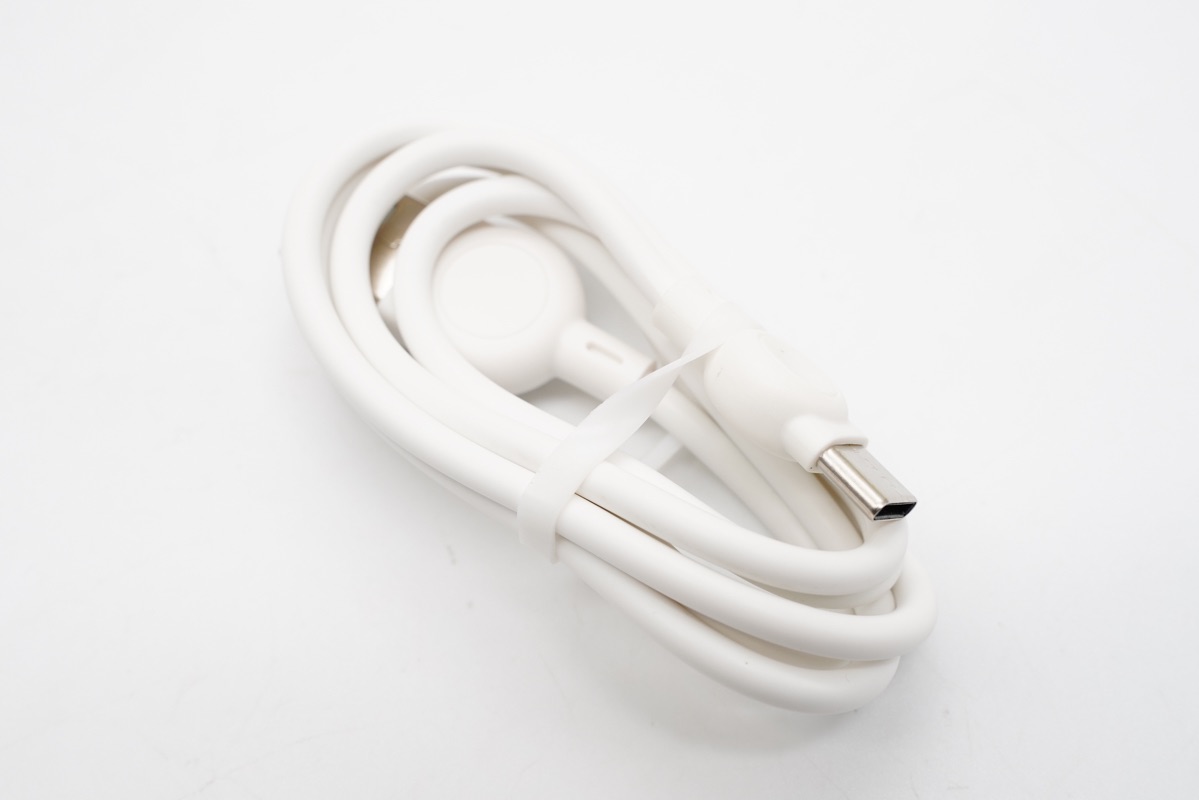 附带线材类型为A2C,白色线身,使用塑料扎带束缚,可以防止线材在包装内散乱。