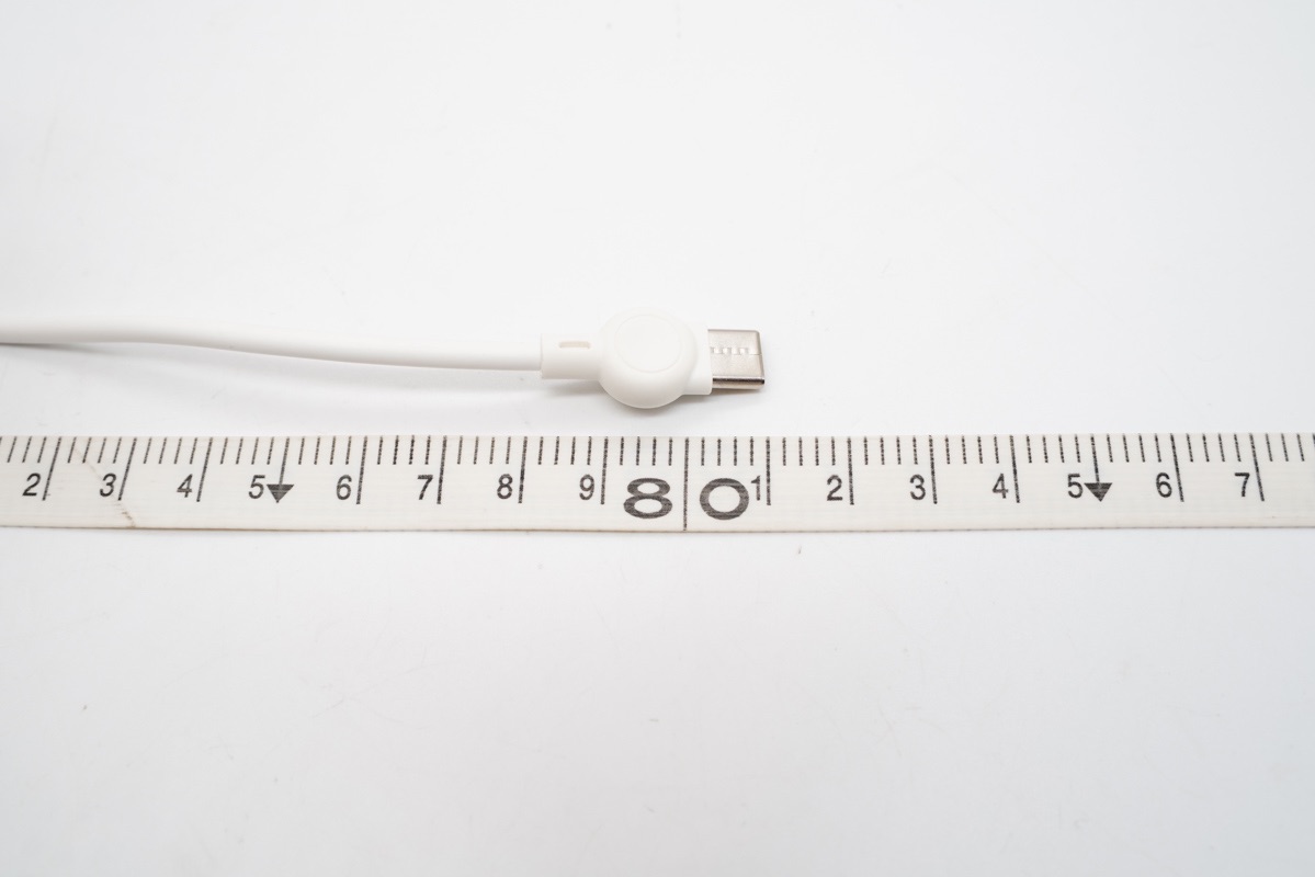 线材端到端的长度约为81cm。并且在线材的端子头上面做了特殊的圆形处理,方便用户插拔使用。