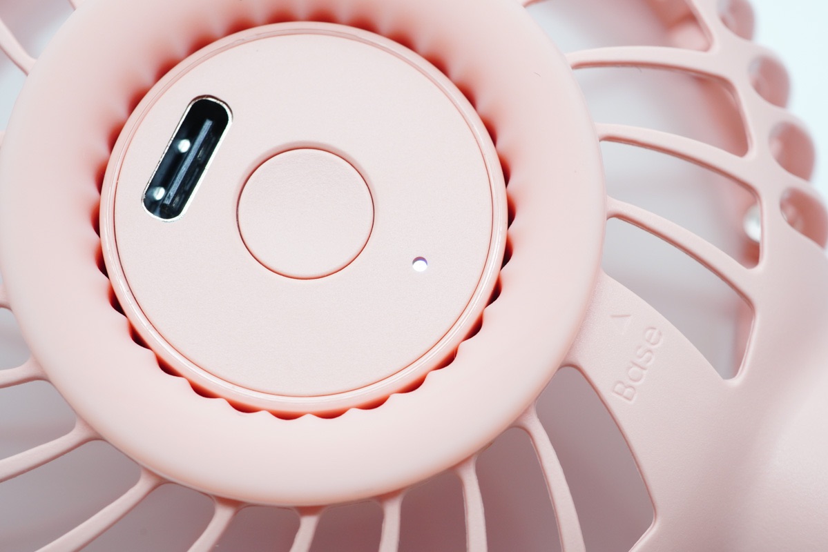 扇叶区背面,风扇的主要操作区全部集中在了扇叶的背面,包括USB-C充电接口,电源按键以及充电指示灯。风扇支持三个档位调节,1档轻柔微风,2档舒适凉爽,3档劲爽去暑。