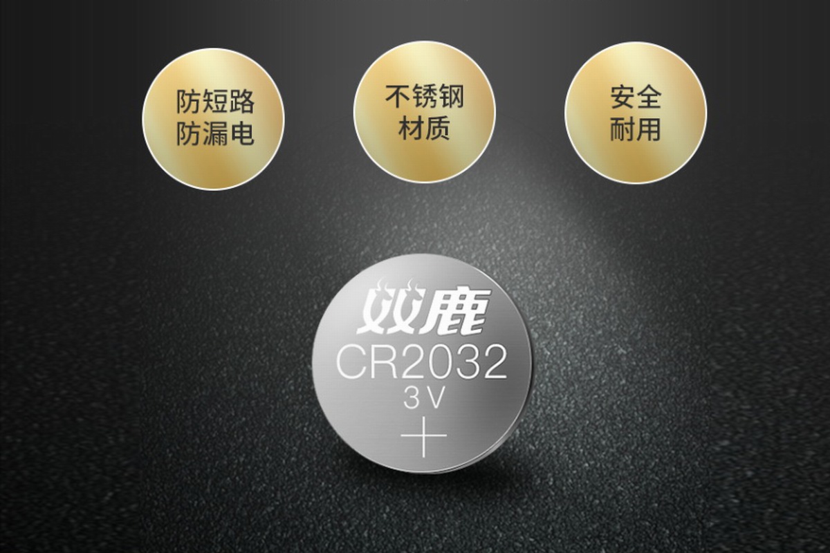 双鹿CR2032电池电压平台3V,壳体采用镀镍不锈钢制作,有效防止电池短路漏液,低自放5年后剩余电量95%,长时间存放不跑电,可提供5年质保。