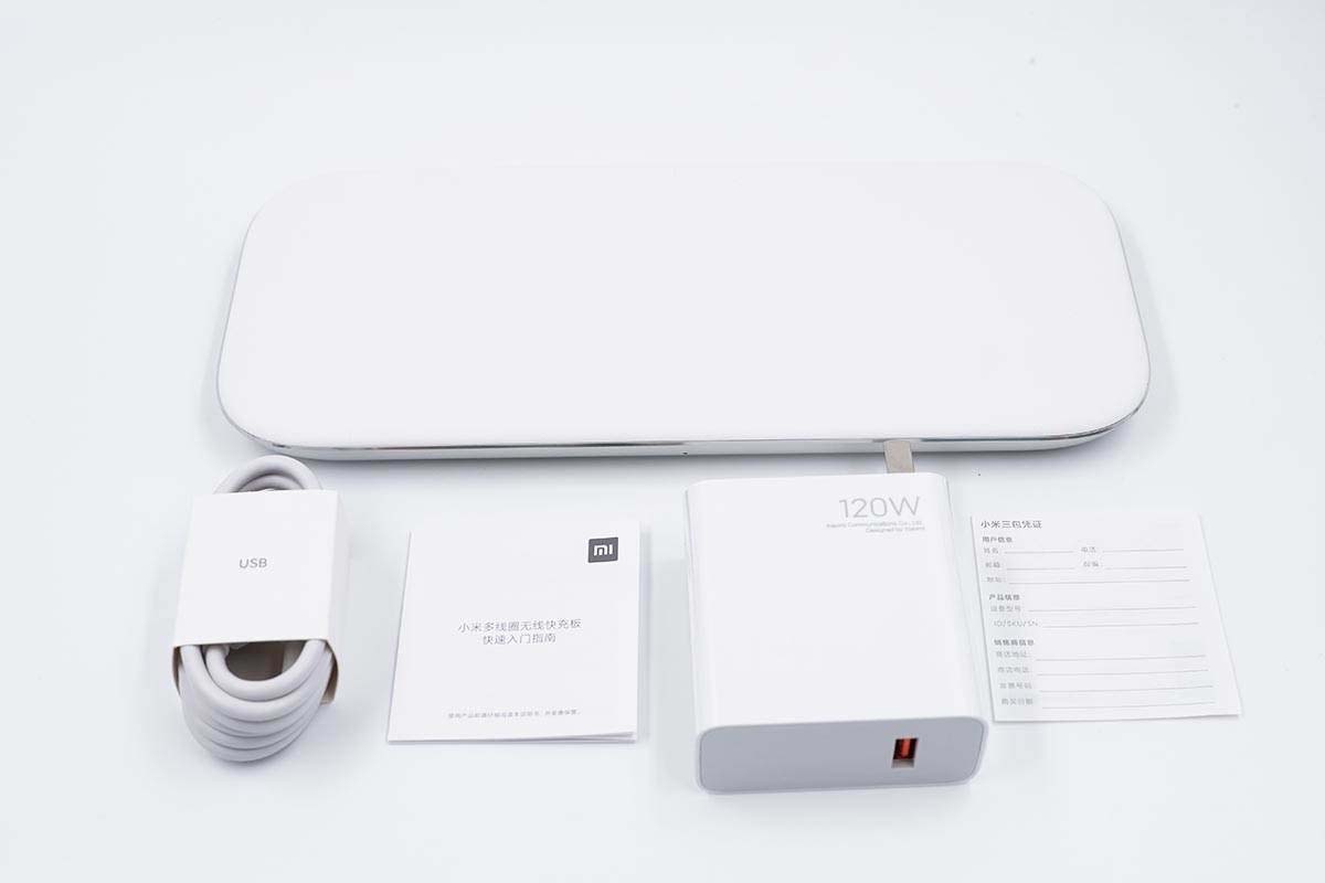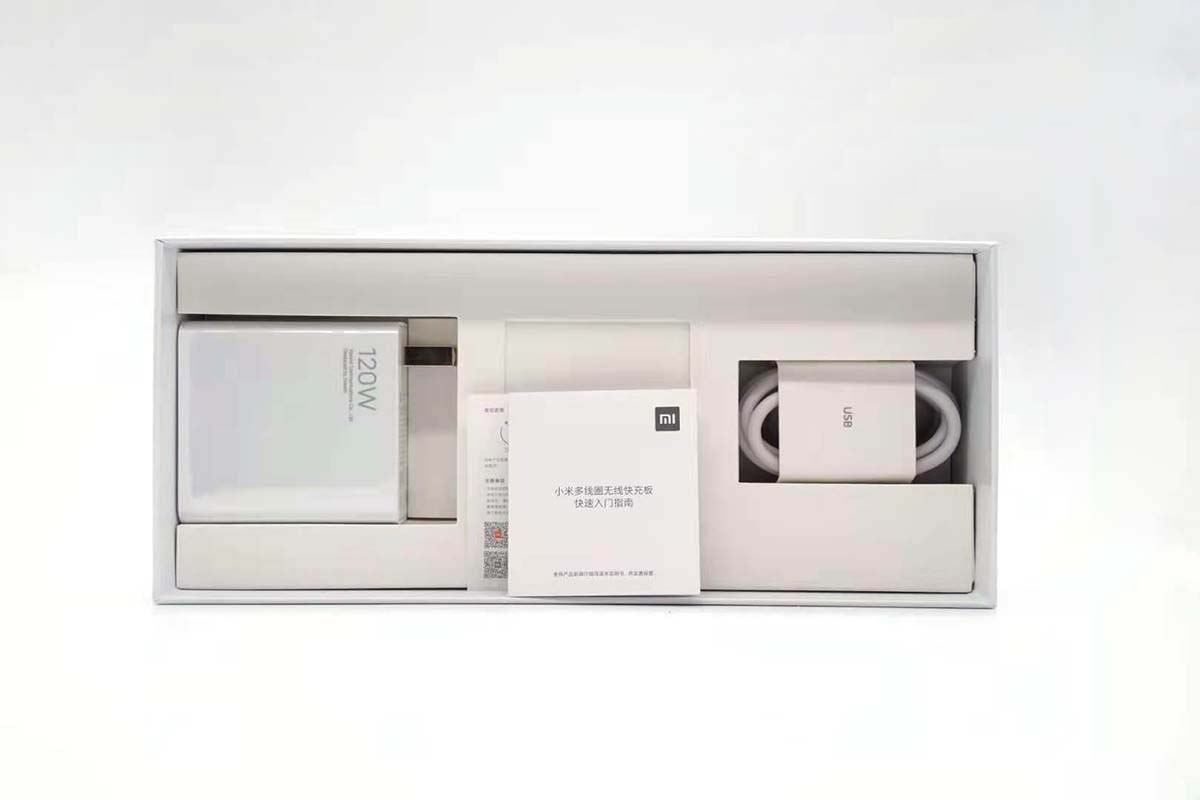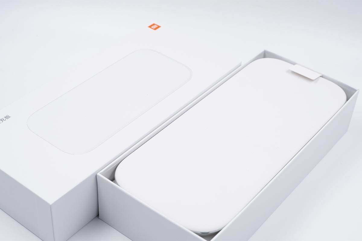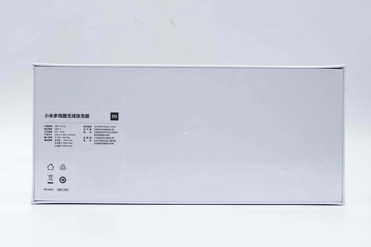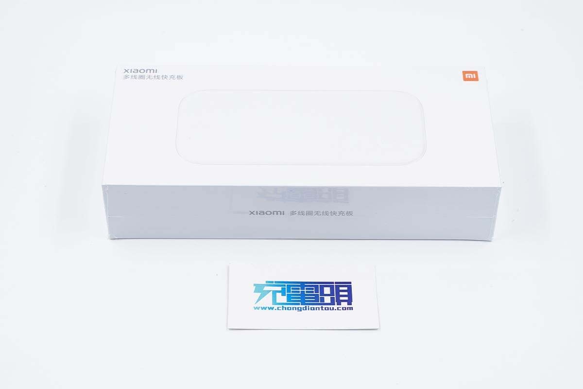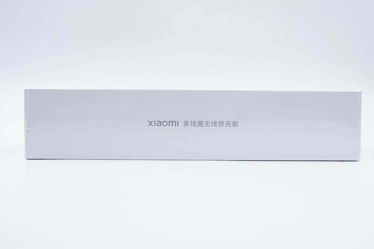 包装盒为白色,顶部印有小米logo以及多线圈无线快充板和名称。