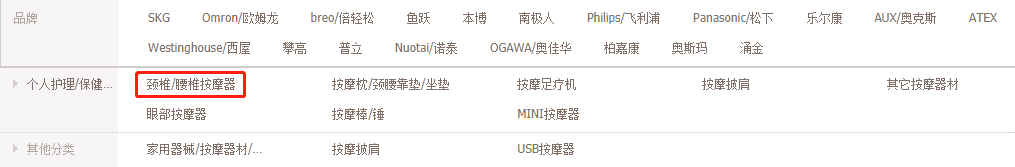 品牌和种类都不少,笔者默默选择了“颈椎/腰椎按摩仪”进一步筛选。