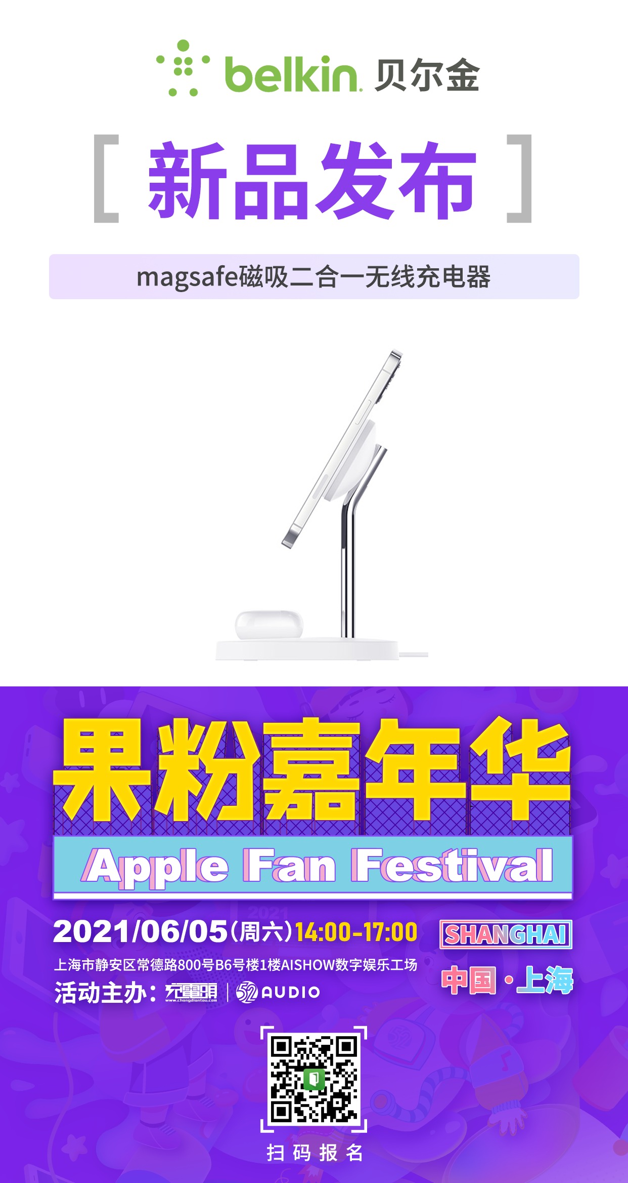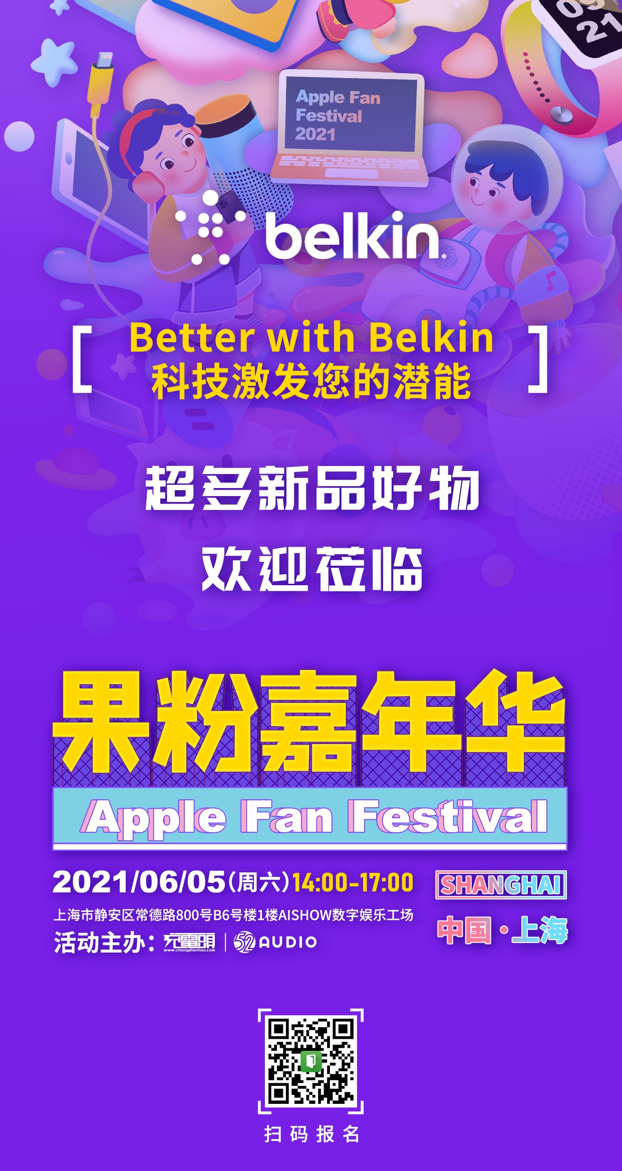 2021果粉嘉年华上海站将在6月5日于中国-上海举办老朋友一个不少,新朋友纷至沓来!感兴趣的小伙伴可以通过图片中的二维码,直接扫码报名参与,6月5日在上海等你!