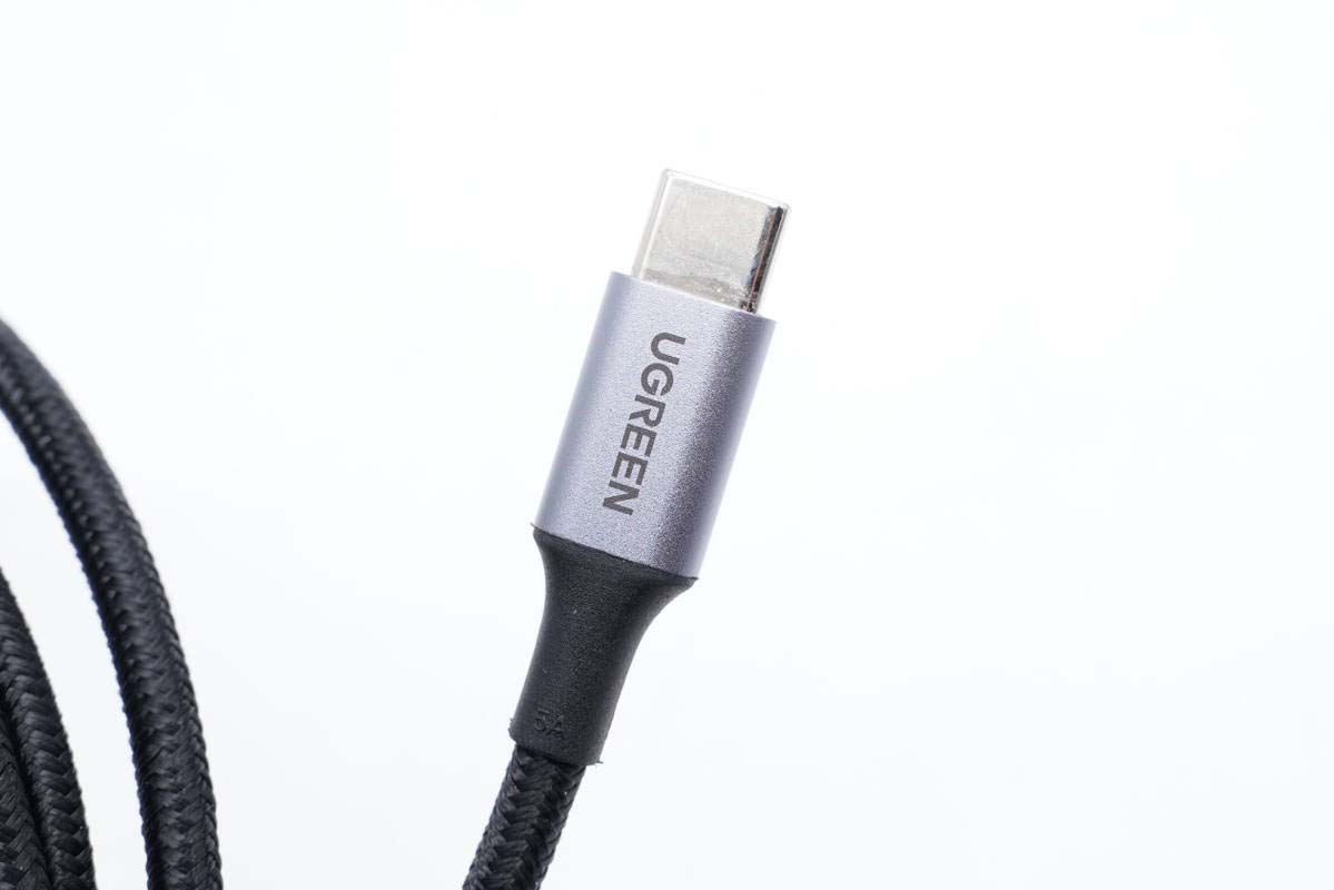 线缆两端做了抗弯折处理,线头外壳采用铝合金材质,印有UGREEN品牌。