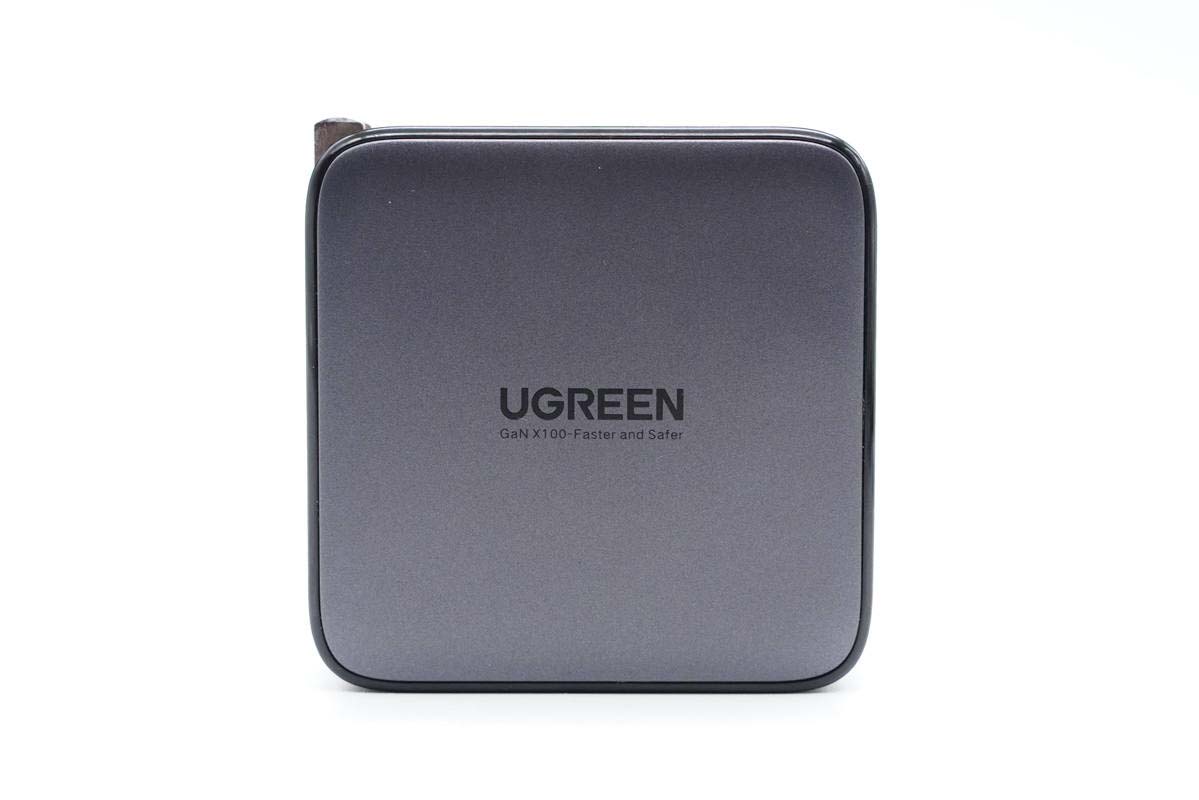 正面中心印有UGREEN品牌和GaN X 100-Faster and Safer字样。