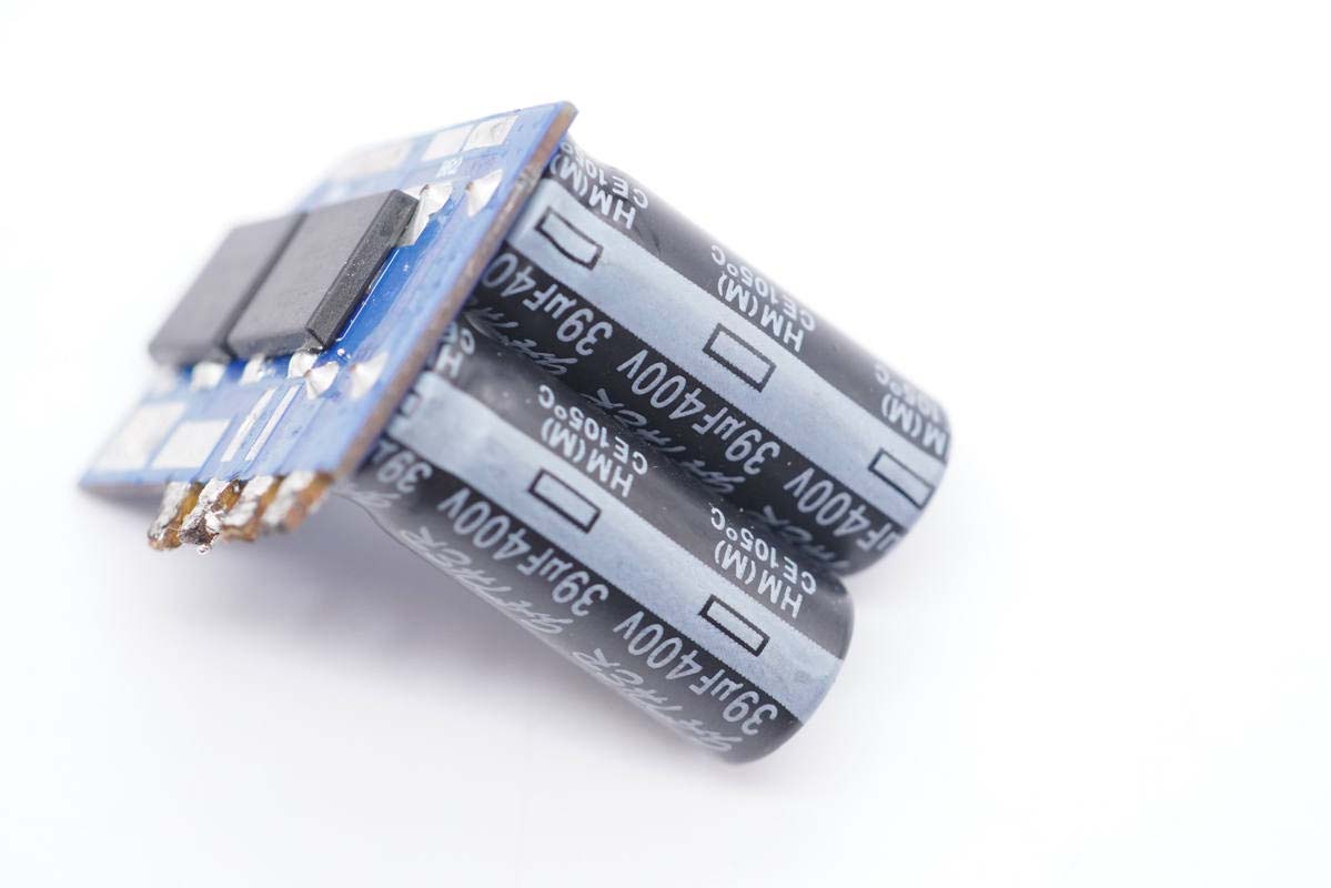 5颗高压滤波电解电容均来自凯泽鑫电子,小板上的两颗规格为400V 39μF。