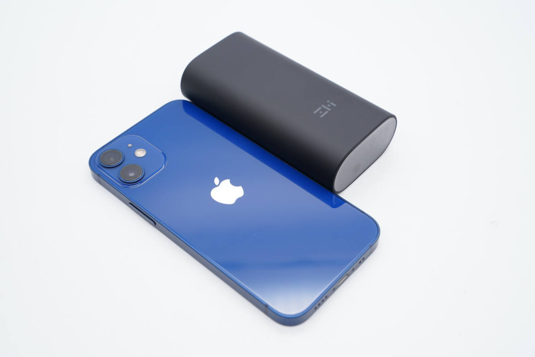 紫米10000mAh移动电源比iPhone 12 mini还要小很多。