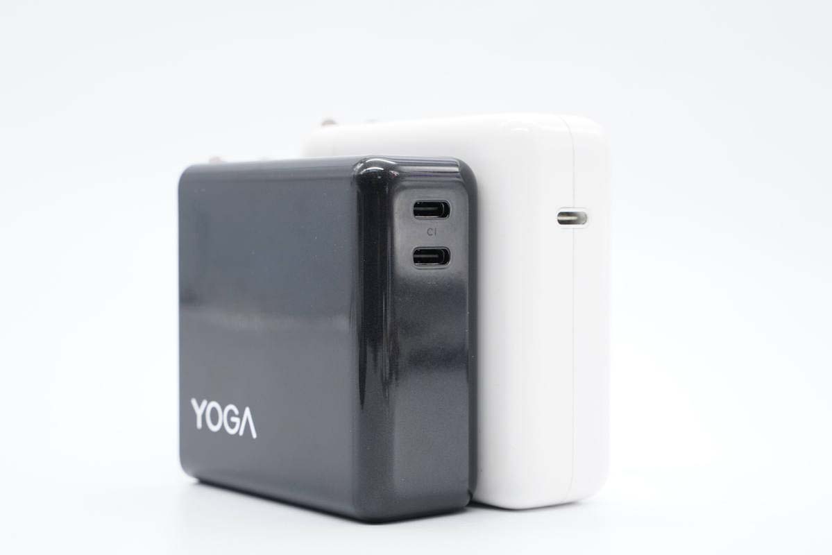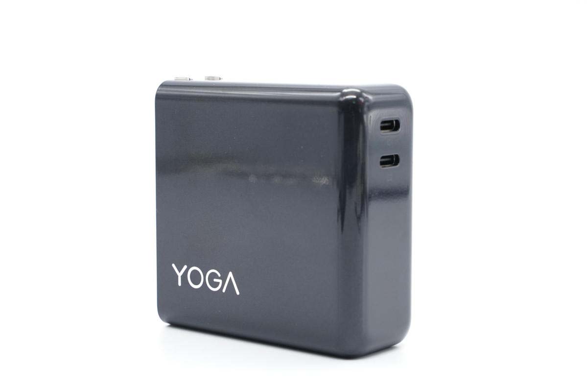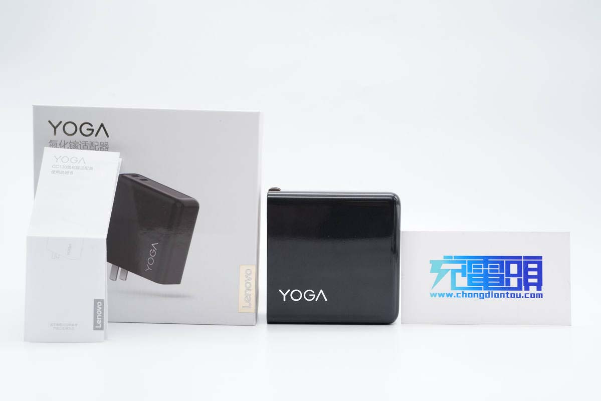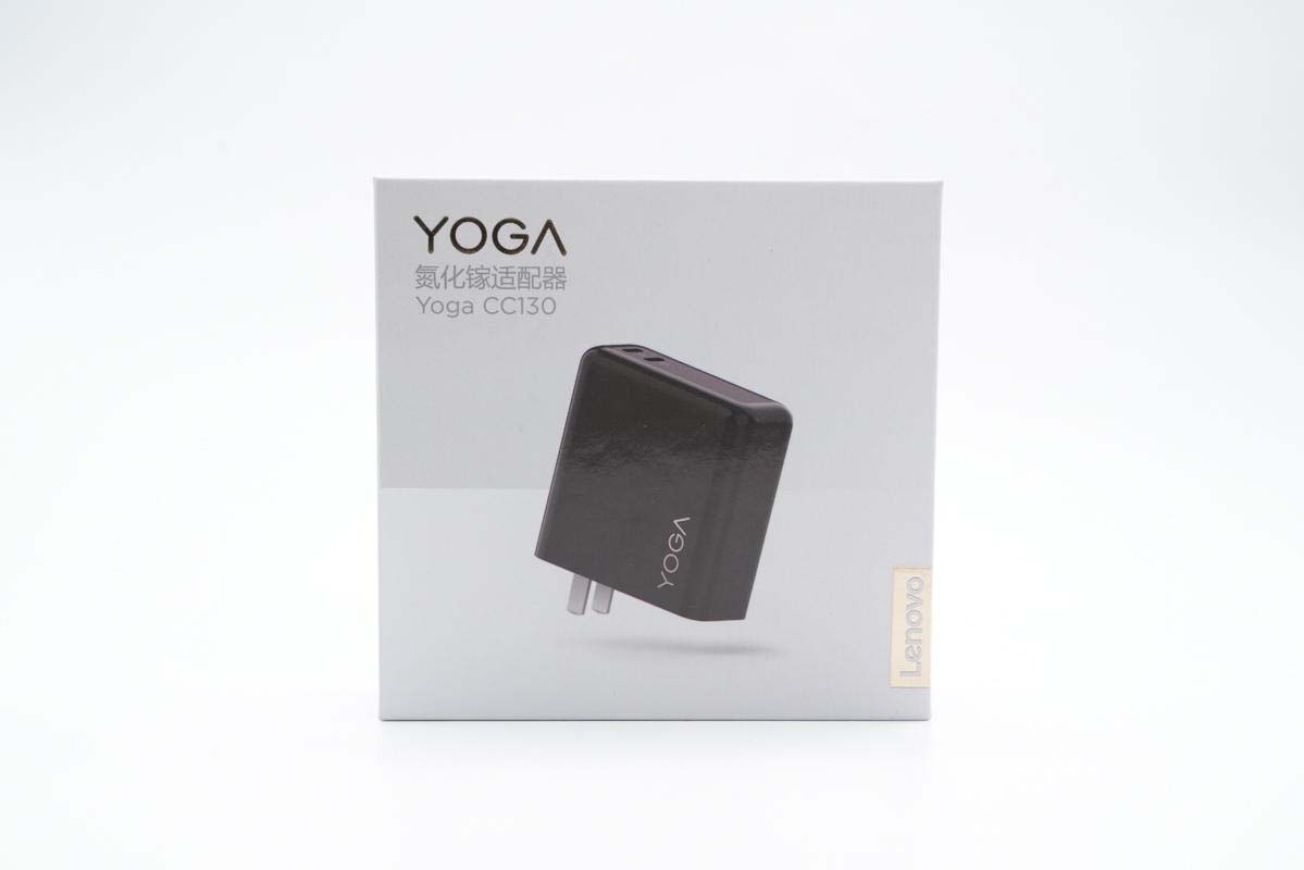 包装盒延续YOGA品牌简约风格设计,对角分别印有Lenovo、YOGA品牌以及产品名称,中心印有充电器外观图。