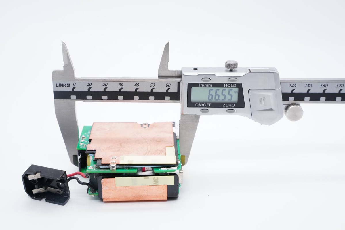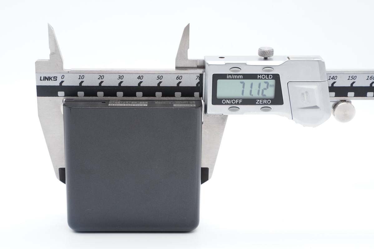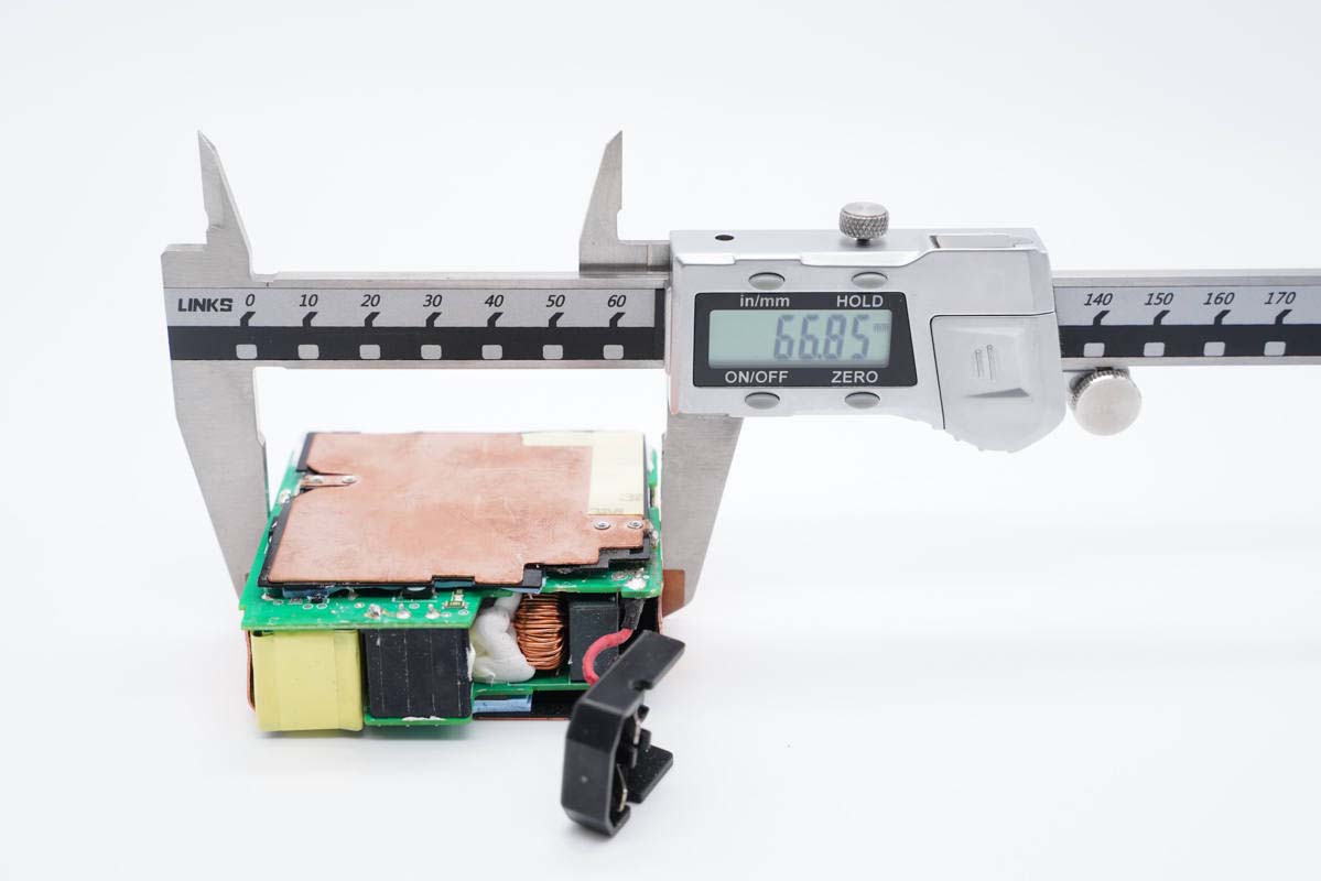 使用游标卡尺实测充电器机身高度为71.1mm。