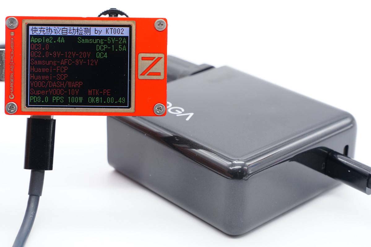 使用ChargerLAB POWER-Z KT002测得USB-C1口支持Apple 2.4A、Samsung 5V2A、DCP协议,以及PD3.0、PPS快充协议。