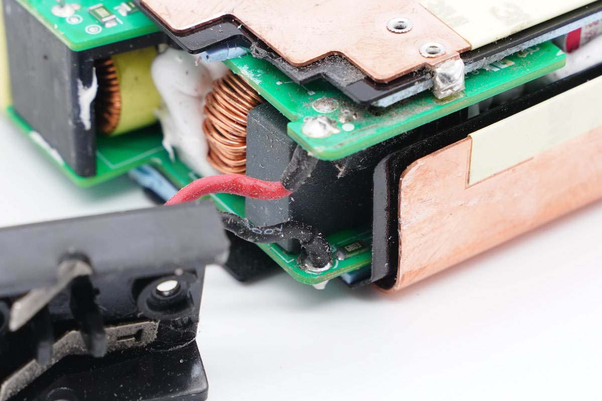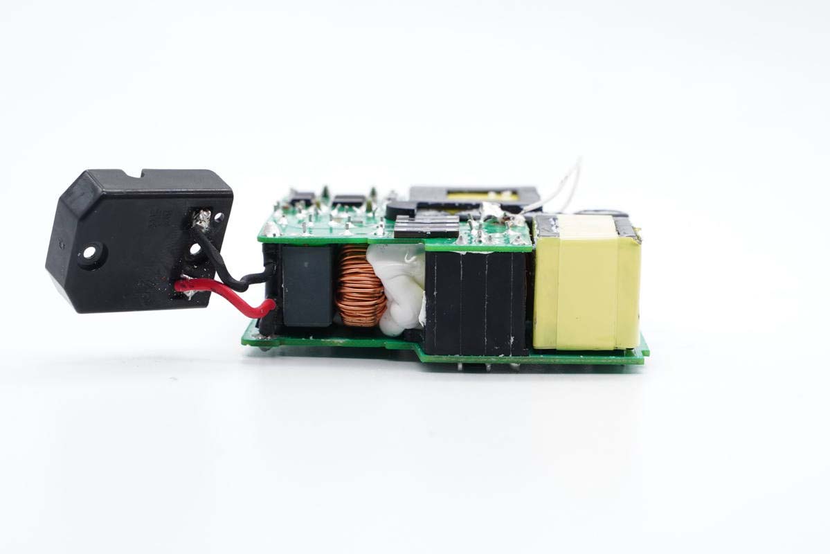 输入端采用AC导线连接通电,夹层间可以看到安规X电容以及共模电感等器件。