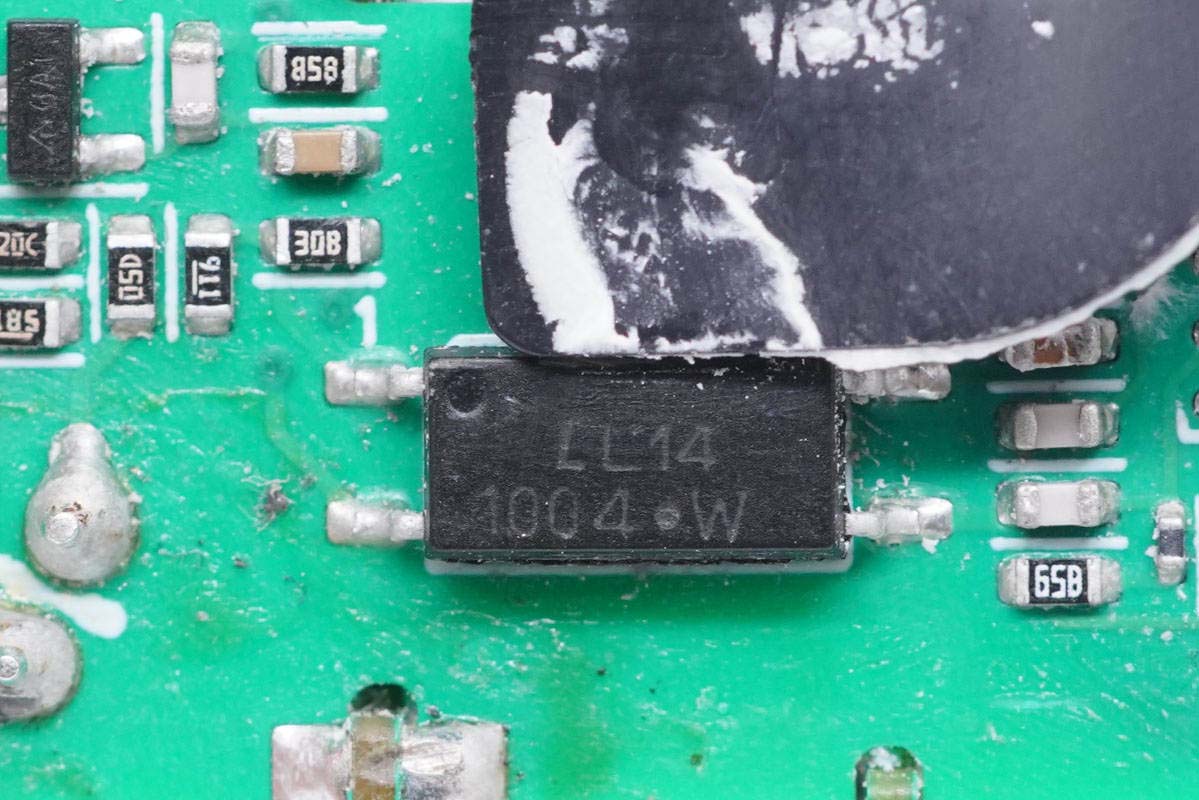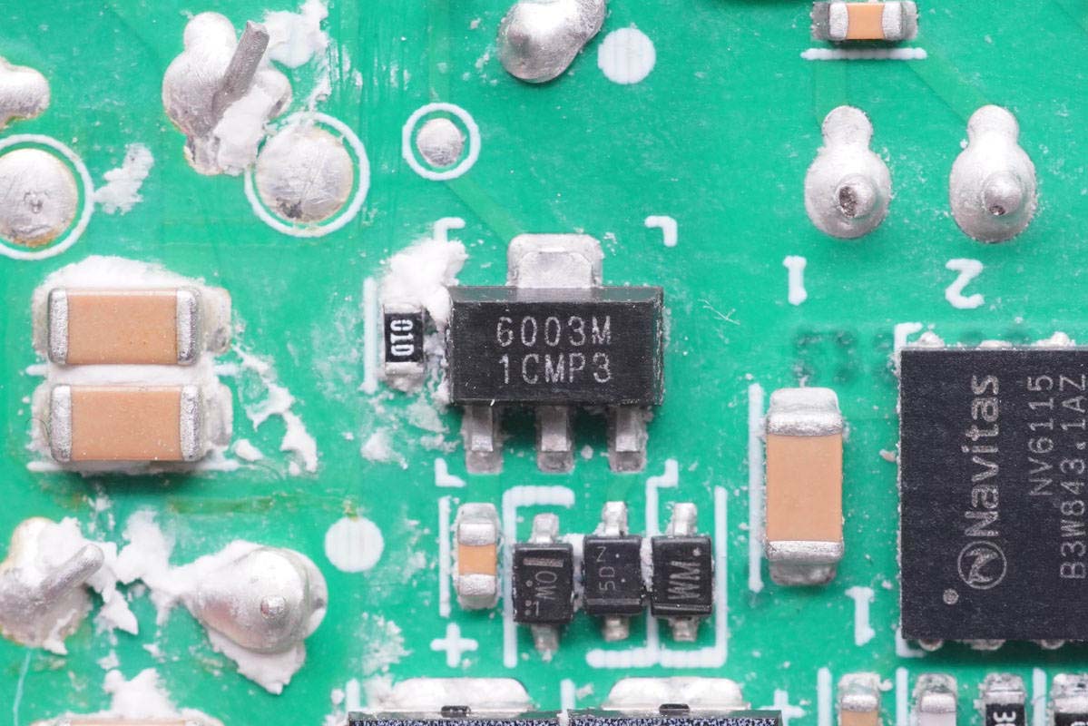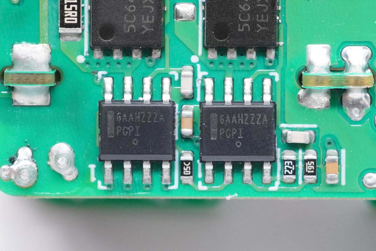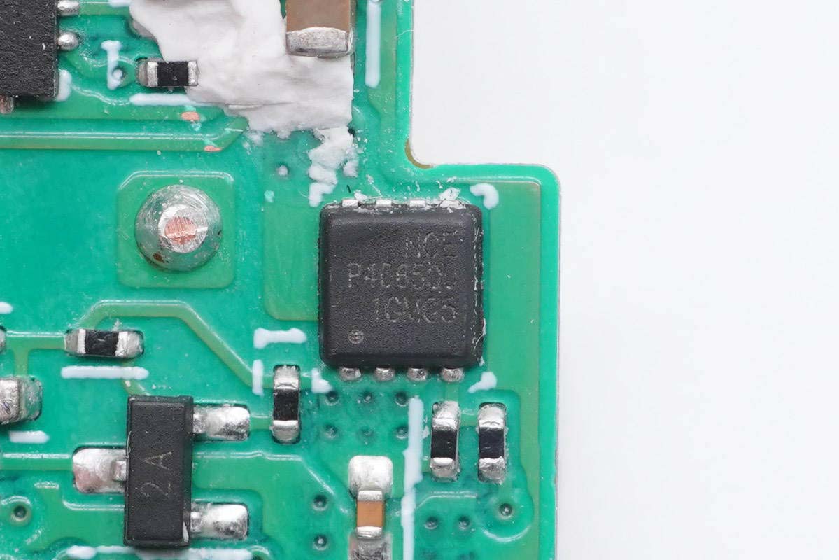主板背面可以看到四颗纳微的开关管,左上角两颗用于PFC升压开关管,顶部是PFC整流管,右侧两颗是LLC开关管。PCB上印有“LUXSHARE ICT”字样,由立讯精密代工。