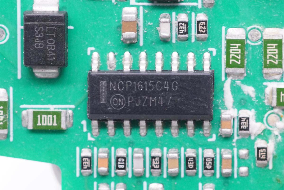 PFC升压控制器采用安森美NCP1615C4,驱动两颗并联的纳微NV6117,配合碳化硅二极管进整流行升压功率因数校正。