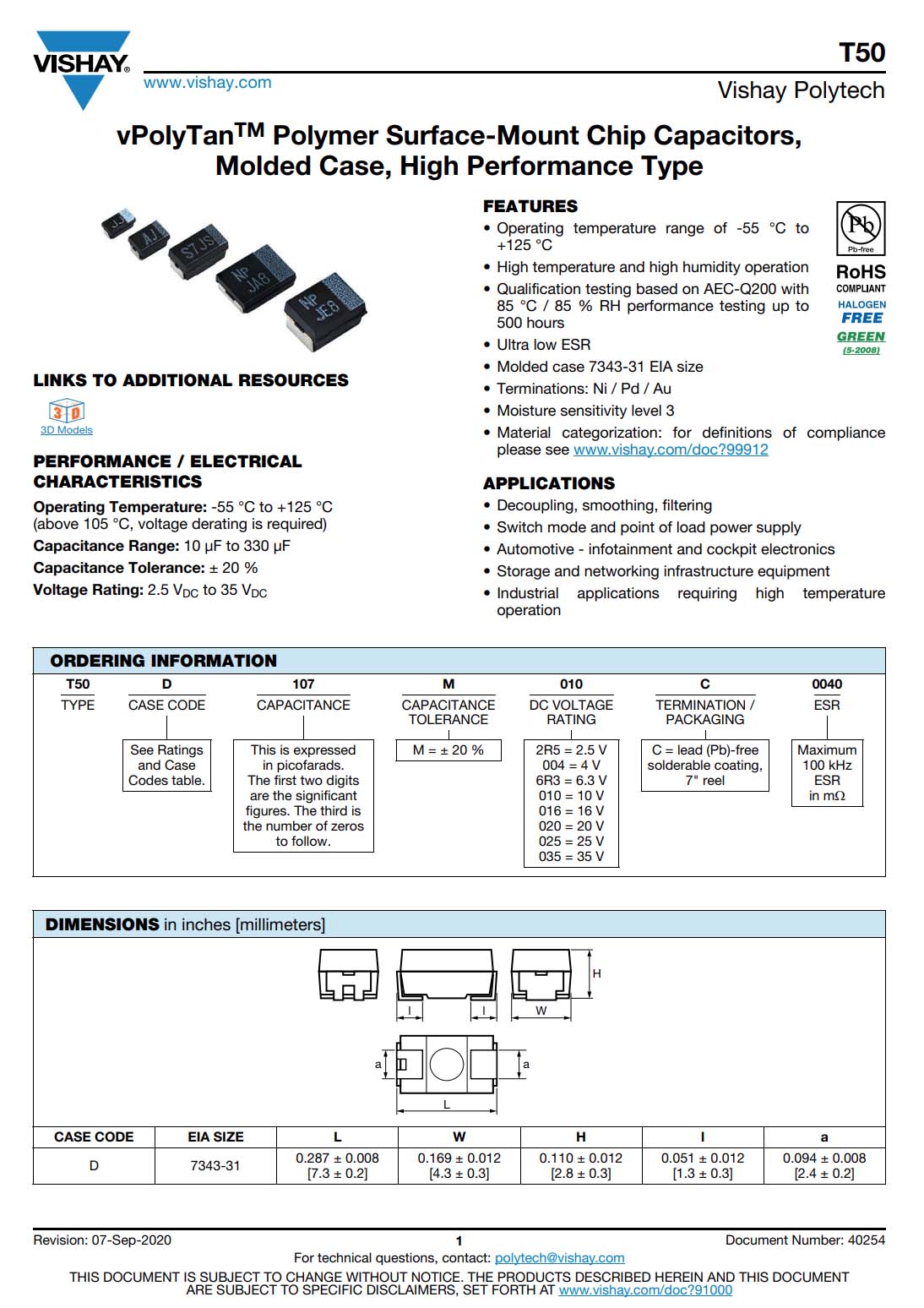 两颗VISHAY T50系列聚合物钽电容并联,25V33μF,为PFC控制器和LLC控制器供电,支持125℃宽温。