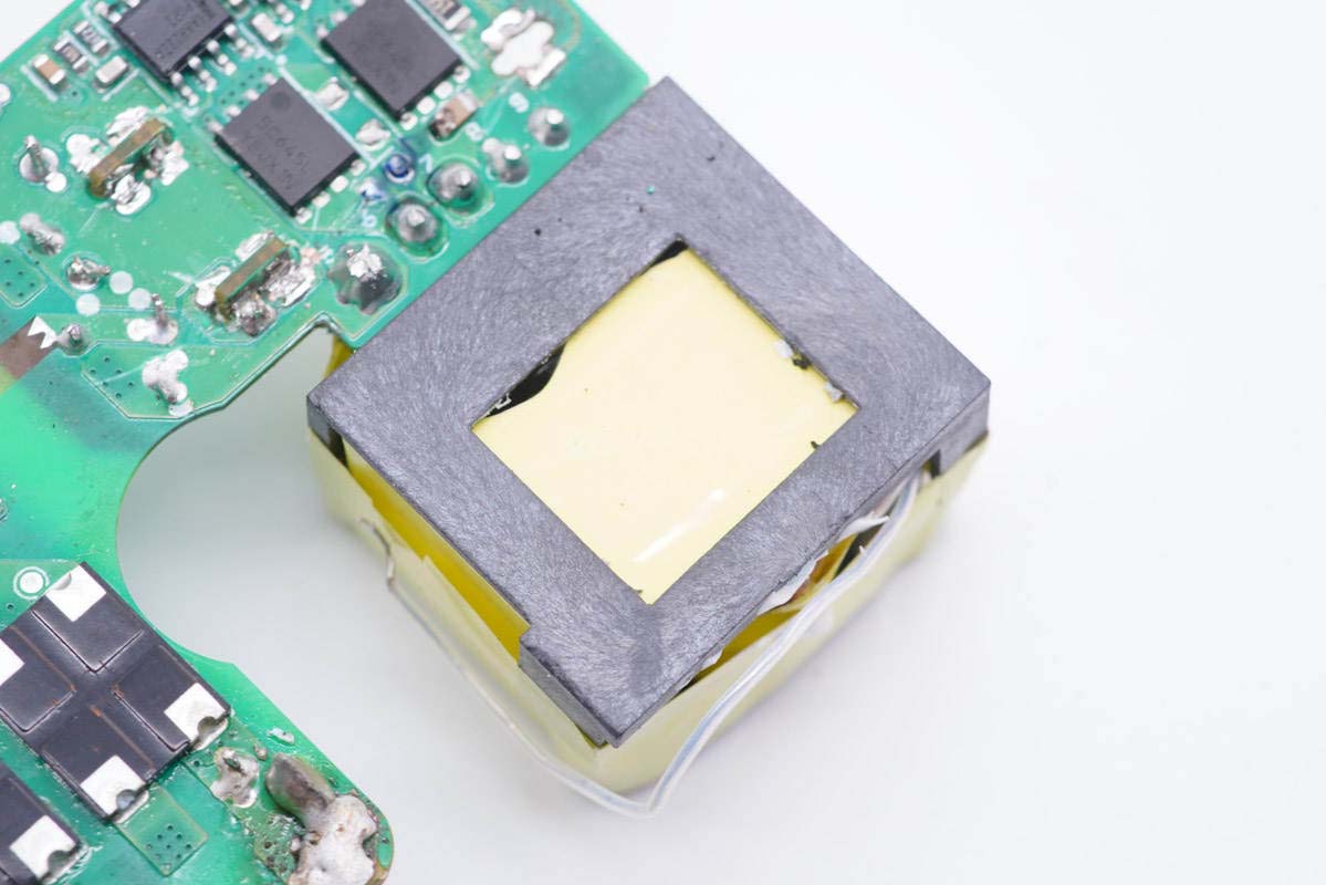 变压器包裹绝缘胶带,顶部打胶帮助导热和固定。