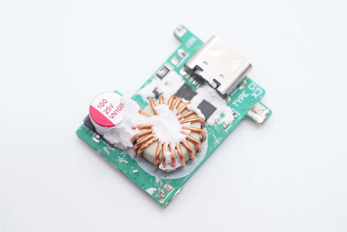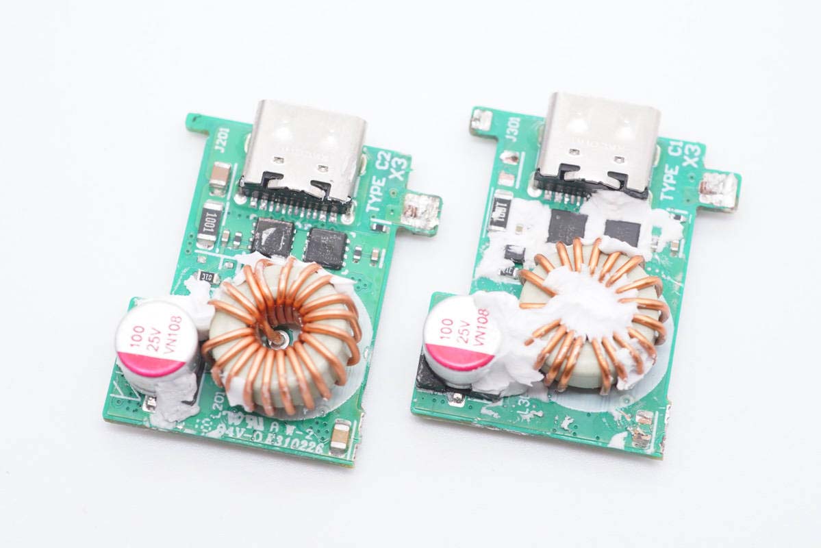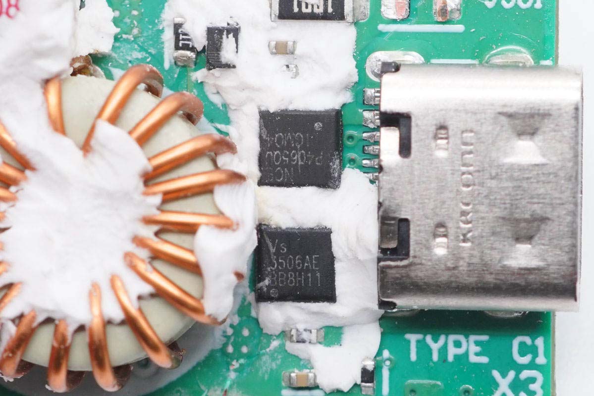 另一面设有同步整流降压转换器、协议IC以及输一颗MOS管,接口背面还有TVS进行静电保护下面我们以其中一块小板为例进行详细了解,不多赘述。