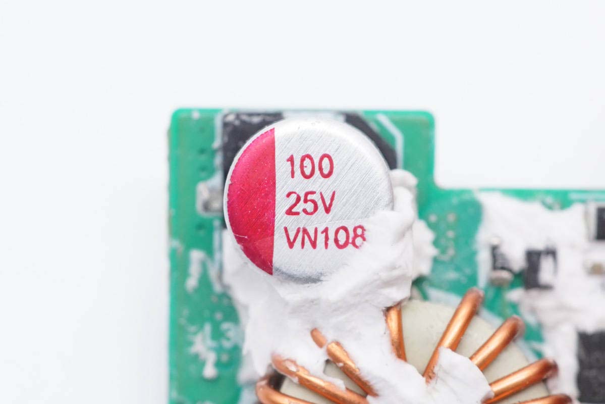 同步整流输出滤波电容采用柏瑞凯RT系列固态电容,规格均为25V 560μF。该系列电容具备超高的耐纹波电流能力,适合应用于大功率快充、通信、服务器、光伏逆变器、双向DC-DC等产品的储能和滤波电路,电压范围支持6.3V-100V,具有105℃/2000小时保证。
