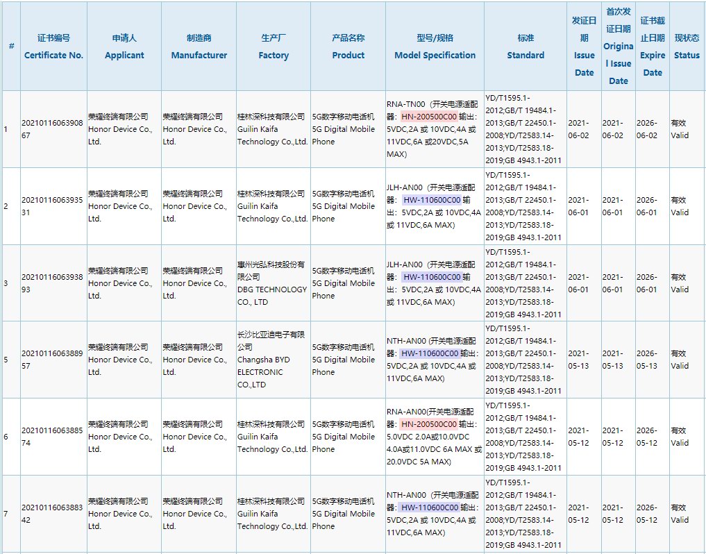 另外通过工信部3C认证页面查询可以发现,荣耀50系列共有两种充电配置,66W超级快充与超越华为的100W超级快充。