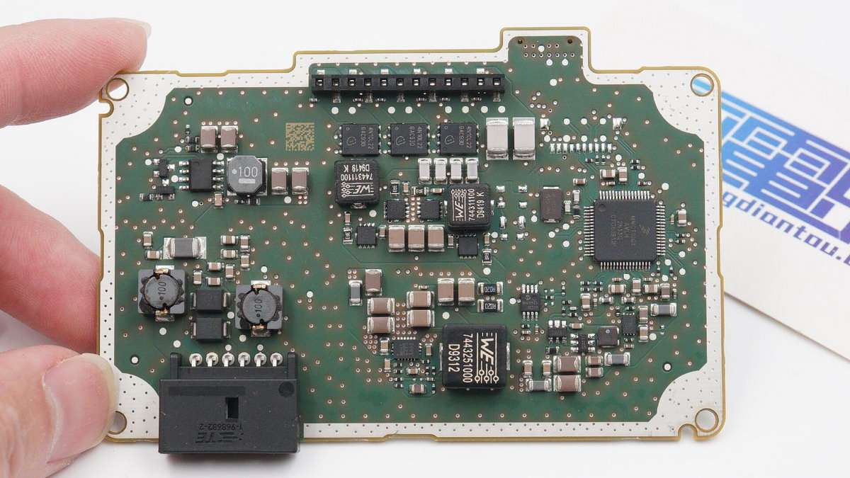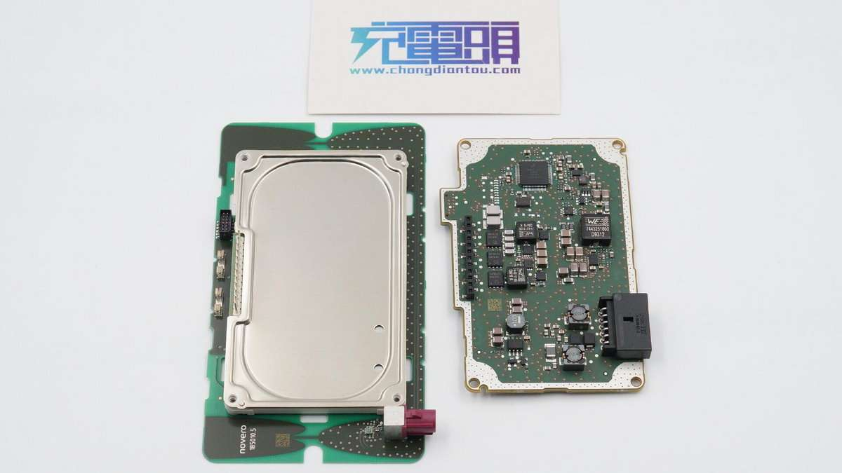 充电头网拆解了解到,大众这个无线充模块采用多层结构设计,配有铝合金散热铁块、散热板,双重屏蔽罩以及防磁屏蔽板,WPC-A13排列线圈。此外模块全部采用车规级元件,采用恩智浦MWCT1001AVLH汽车无线充电发射端控制器,安森美AEC-Q101车规认证MOS组成全桥MPS的降压转换器进行降压供电。整体的设计、用料都非常的讲究。