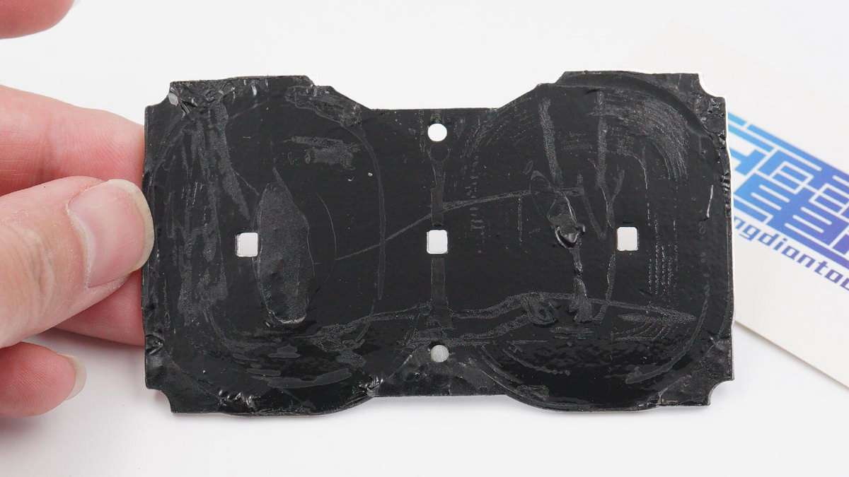 背面边缘外壳上贴满了各种标签,中心镂空放置铝合金铁块。