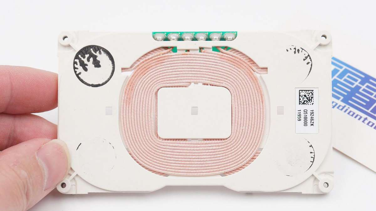 塑料板另一面中心还有一个无线充电线圈,线圈排列为WPC-A13。