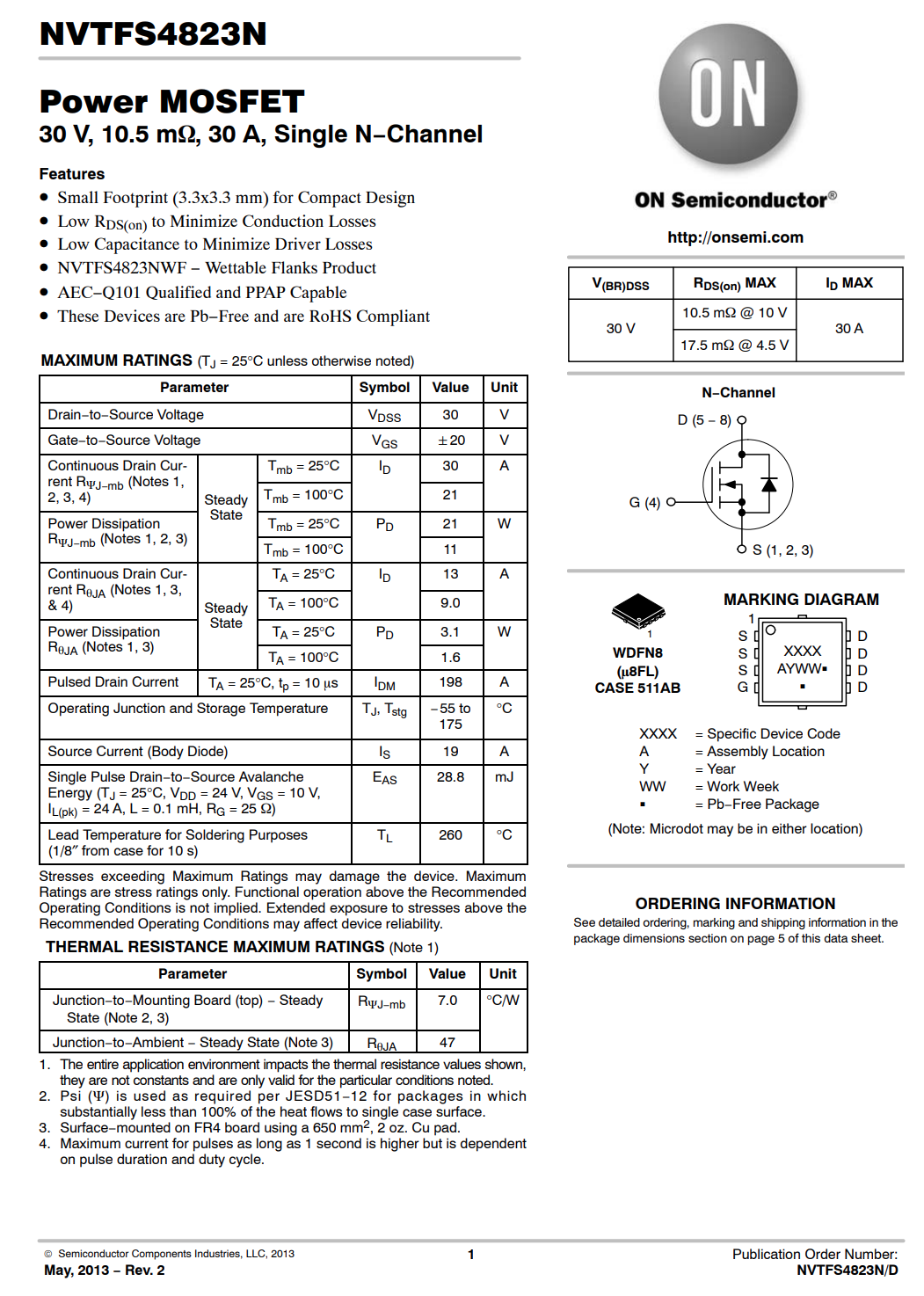 安森美 NVTFS4823N 详细资料。