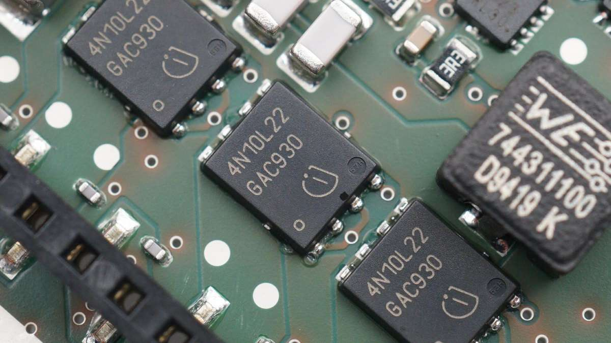 英飞凌IPG20N10S4L-22A 双NMOS,用于三个无线充电线圈切换。耐压100V,导阻22mΩ,车规级AEC Q101认证元件。