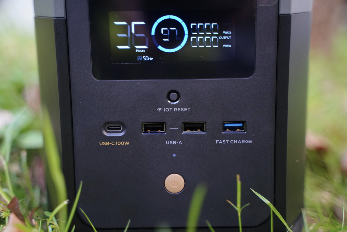 另一侧为户外电源自带的USB输出接口,分别为USB-C输出接口,支持100W PD快充输出;3个USB-A输出接口,其中一个内部为蓝舌意为支持快充。