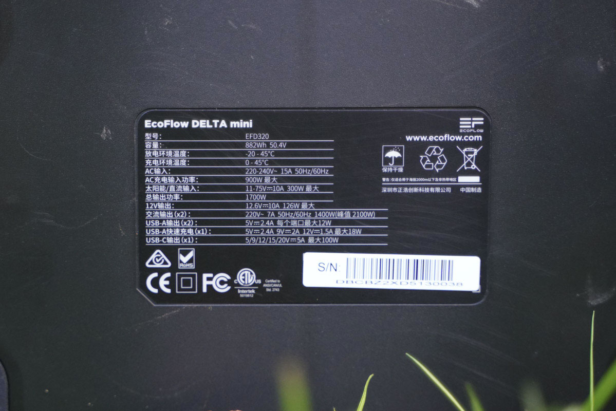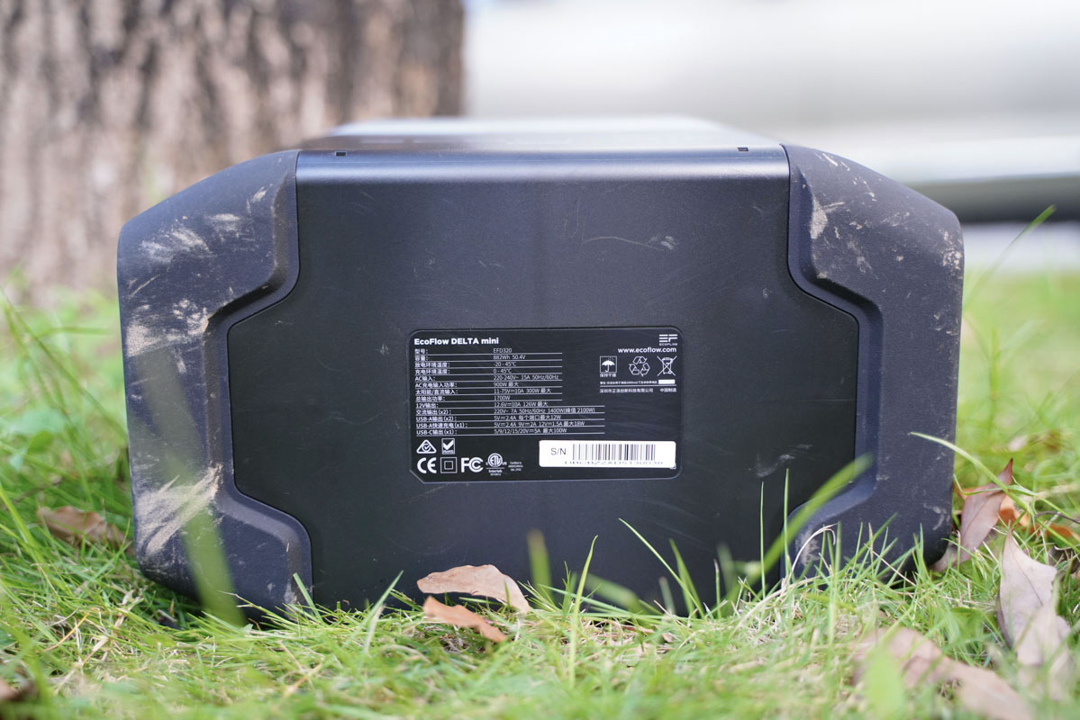 德 DELTA mini 户外电源的底部同样自带两块大面积的胶垫,放在地上可以防止滑动,同时也提供了一定的缓冲作用。