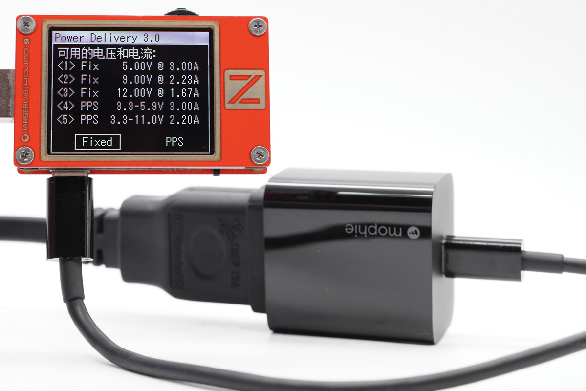 读取充电器的 PDO 报文,支持 5V3A、9V2.23A、12V1.67A三个固定输出电压档位以及3.3-5.9V 3A、3.3-11V 2.2A 两组 PPS 档位。