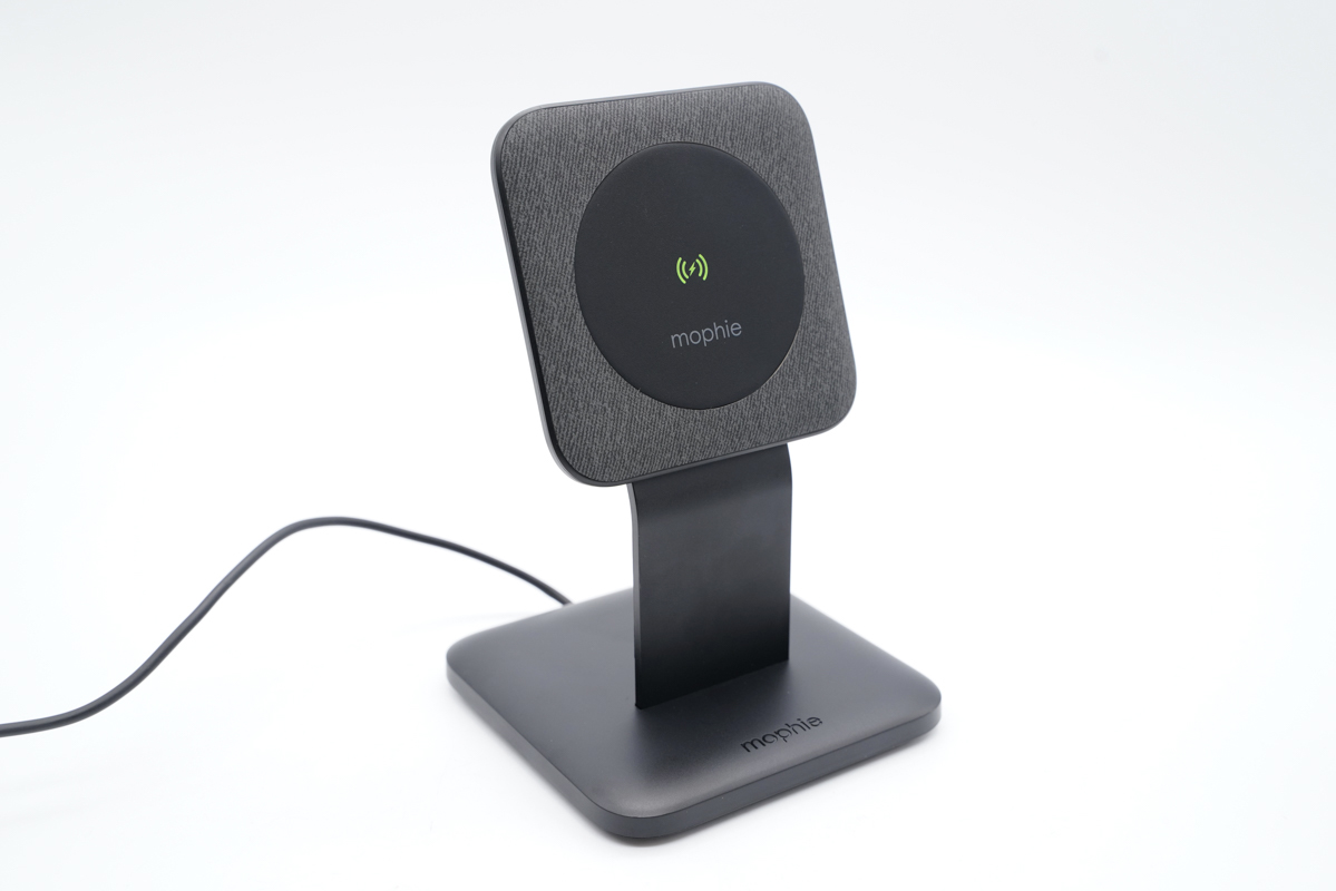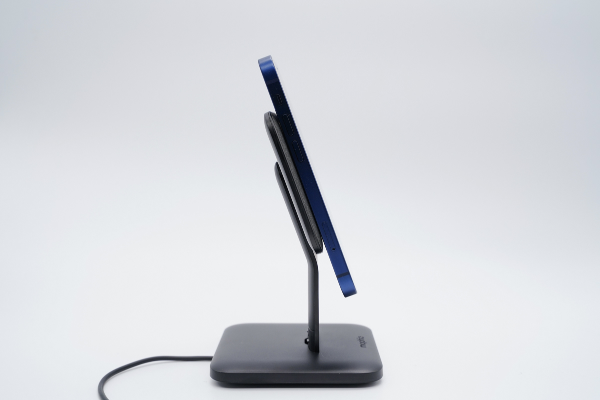 mophie 立式磁吸无线充电器整体采用两部分设计,磁吸无线充电器和底座支架。