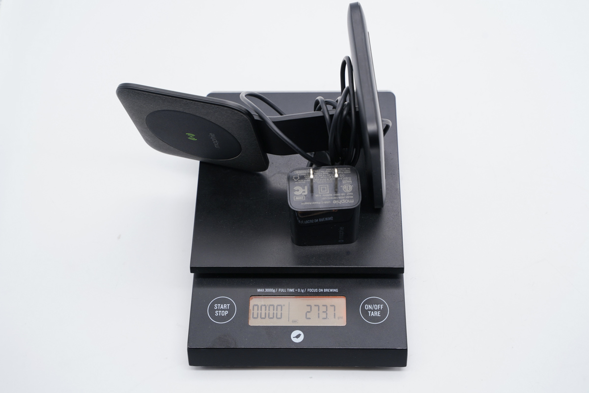 20W 充电器加上立式磁吸无线充电器的重量约为 273.7g。
