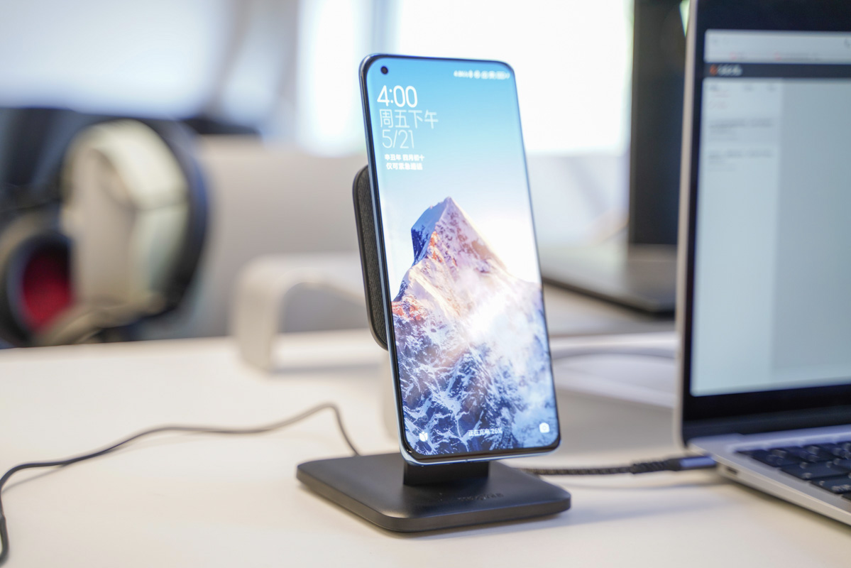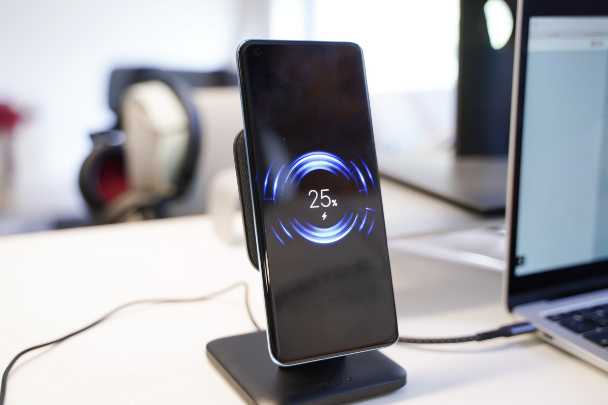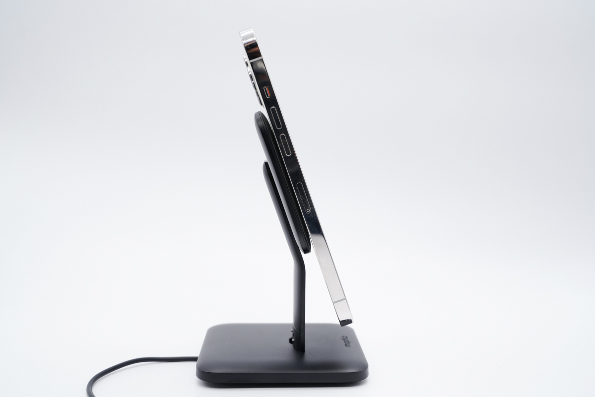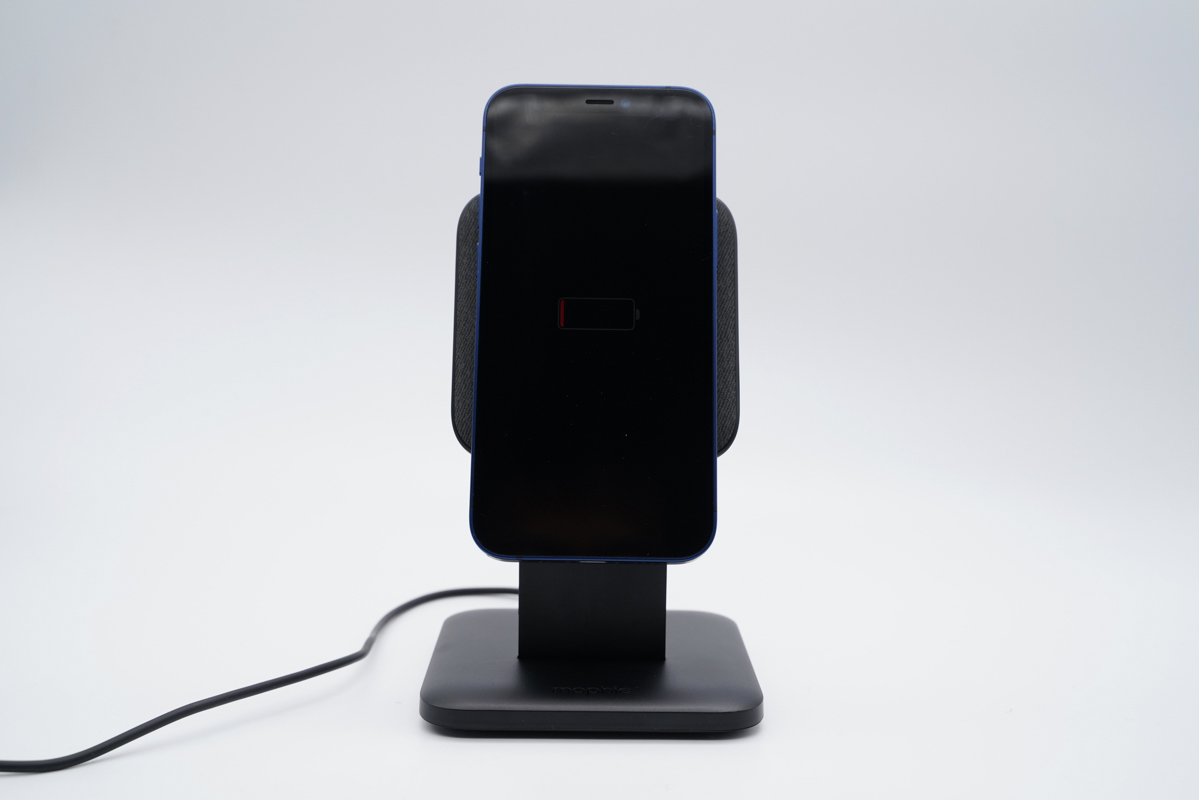 这是组装后的 mophie 立式磁吸无线充电器的状态。