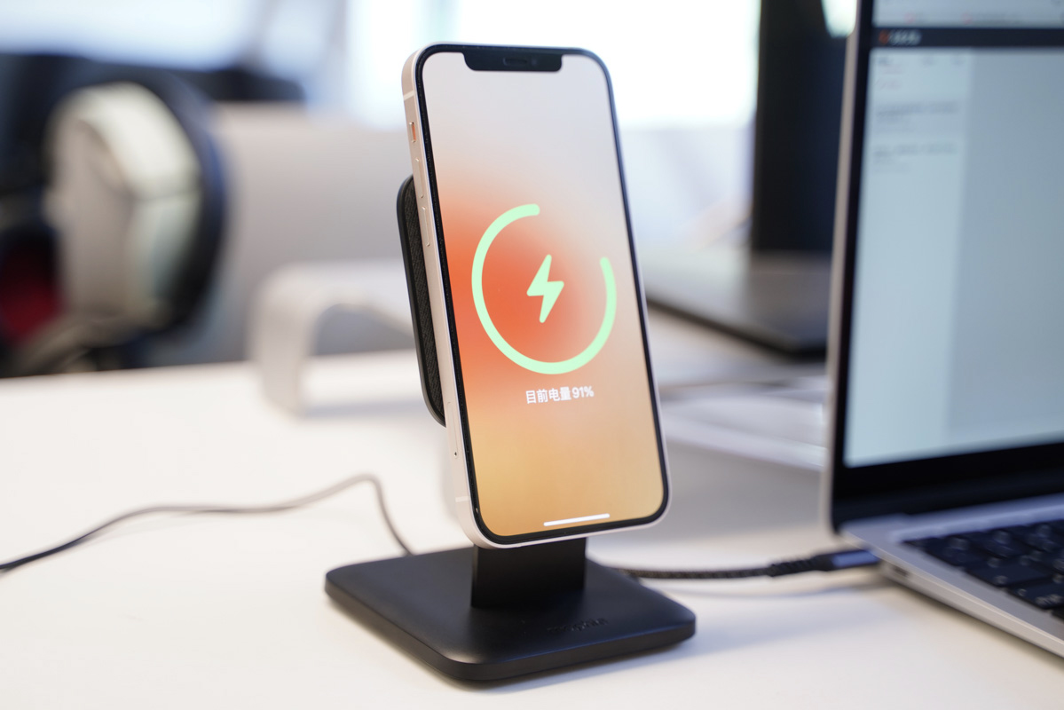 目前无线充电大部分是碎片化充电方式,早上到办公桌坐下,随手将手机放在 mophie 磁吸无线充电器上面,来消息方便查看。并且 mophie 还提供了磁吸贴片让非iPhone 12 的机型也能使用无线充电。总的来说,mophie 立式磁吸无线充电器搭配办公桌或者床头柜使用确实不错。