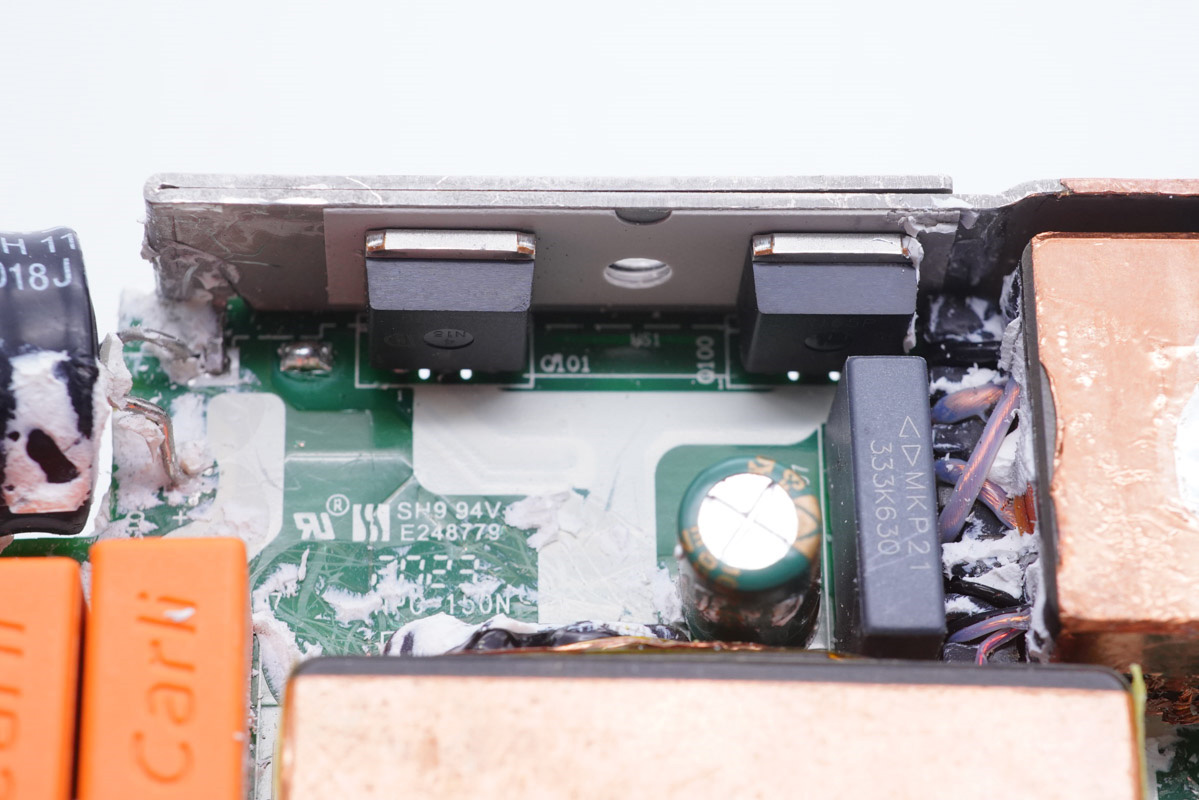 这款电源采用了时下热门PFC+LLC开关电源架构,恩智浦TEA19162+TEA19161CT+TEA1995T全套方案,MOS管均来自一线大厂英飞凌,安森美。此外采用艾华、丰宾电解电容进行滤波,整体的方案用料很可靠。