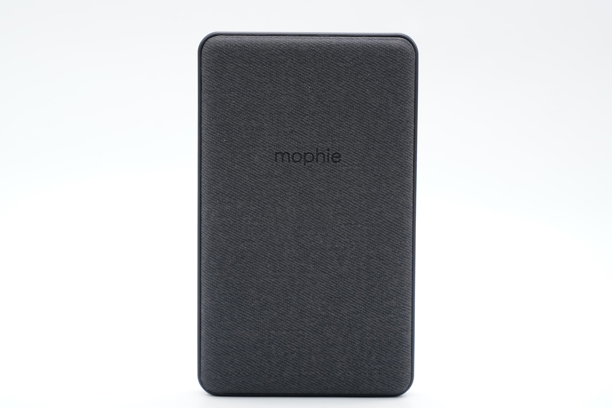 mophie磁吸无线充电宝采用日本东丽布艺覆盖,上手体验很不错。这一设计在mophie的其他产品上很常见,正面仅有mophie的品牌Logo。