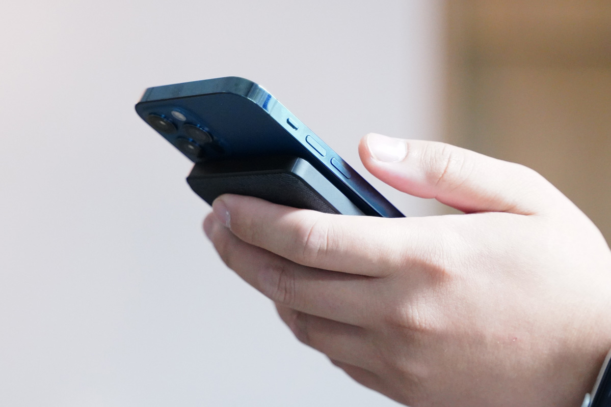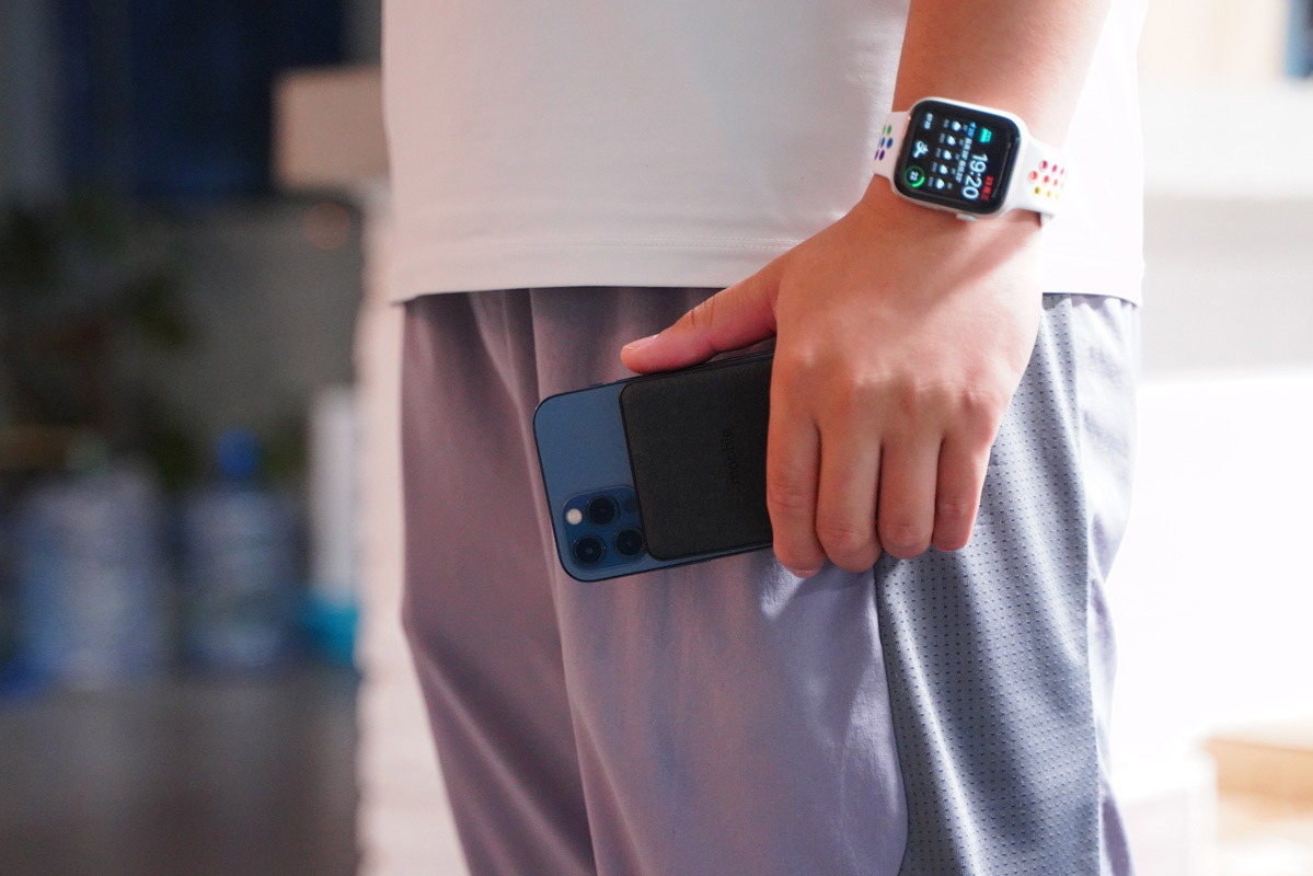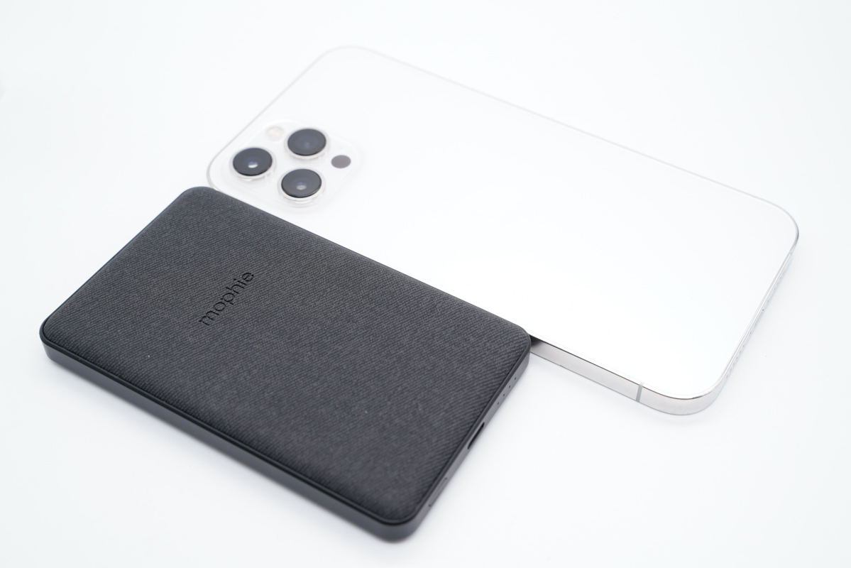 mophie磁吸无线充电宝体积小巧,外形轻薄,可以更好的贴合iPhone 12 Pro背面使用。