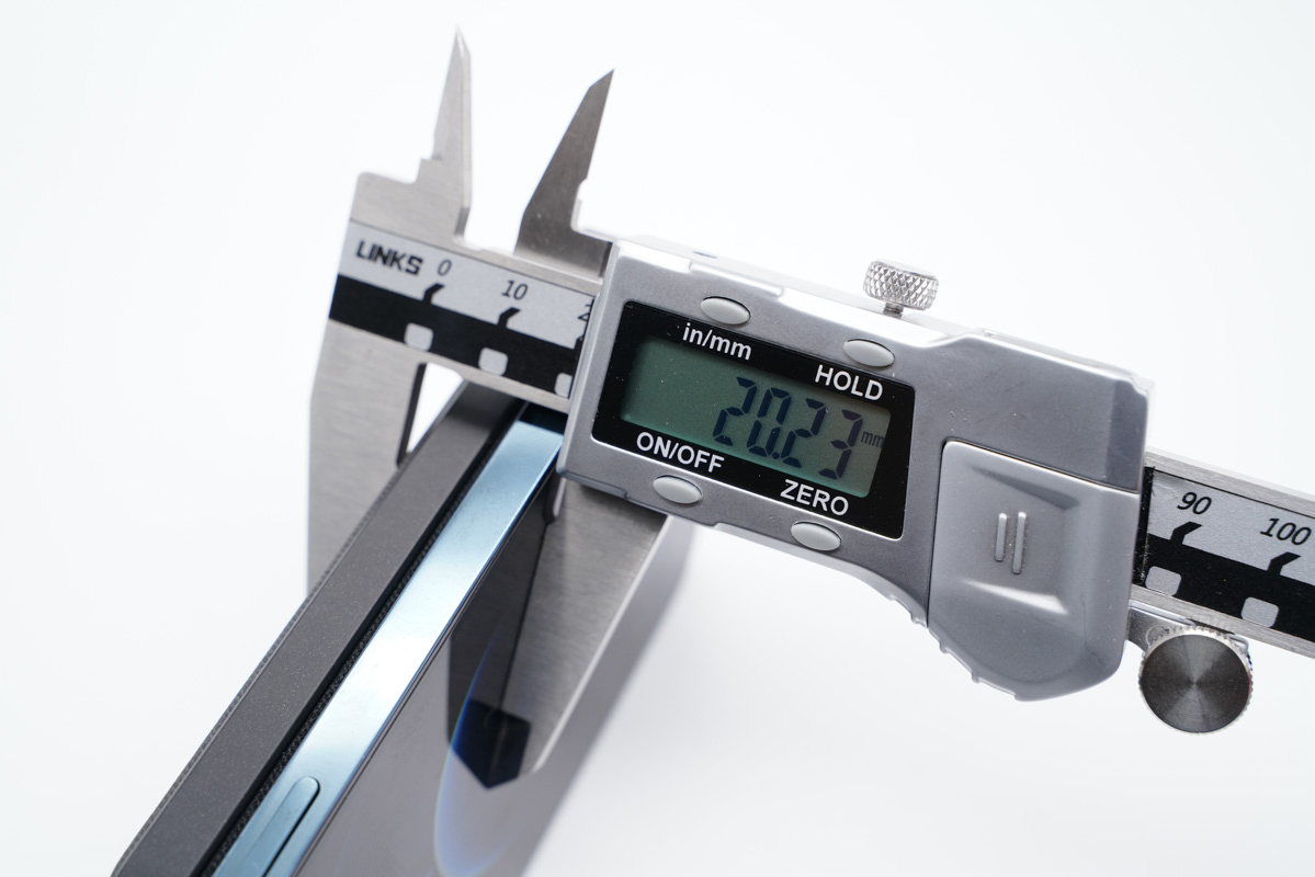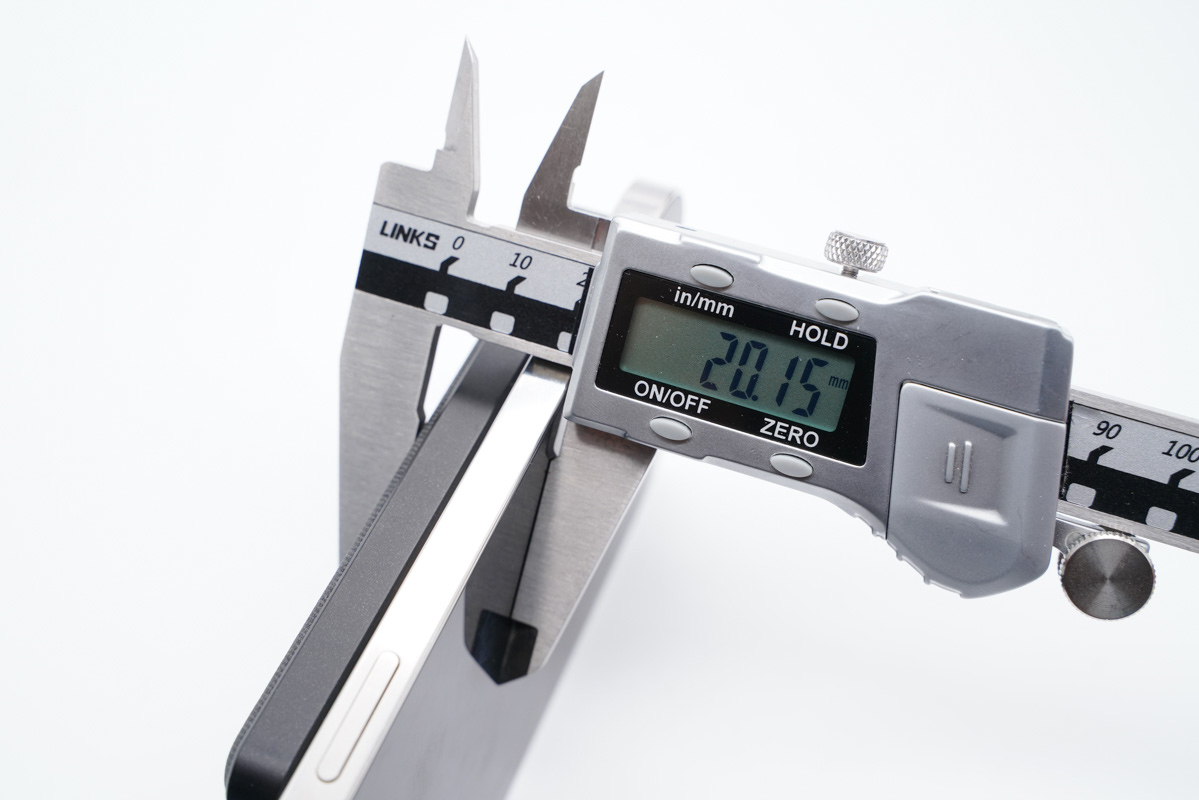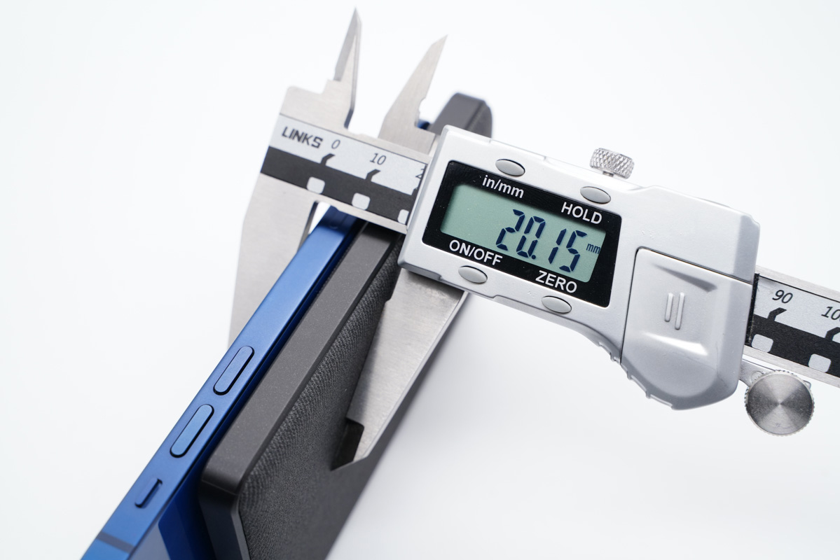 iPhone 12 Pro Max加上mophie磁吸无线充电宝的厚度约为20.15mm。