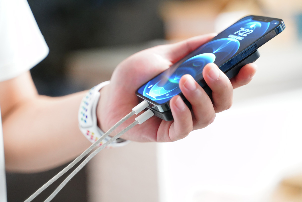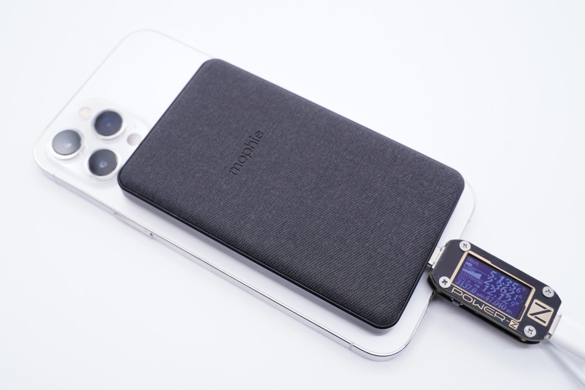 甚至还可以将mophie磁吸无线充电宝贴合在手机背面,然后通过有线为手机进行快充,出行携带很方便,而且还可以享受快充。