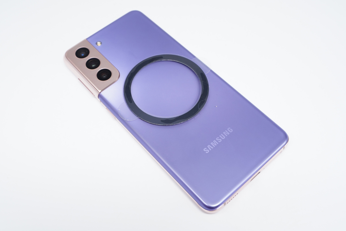 磁吸贴片是mophie在iPhone 12磁吸无线充电外衍生出来的配件产品,可以让不支持磁吸的其他手机也可以使用磁吸无线充电,只需要搭配附带的纸质定位尺为磁吸贴片定位,然后贴在手机背面即可。