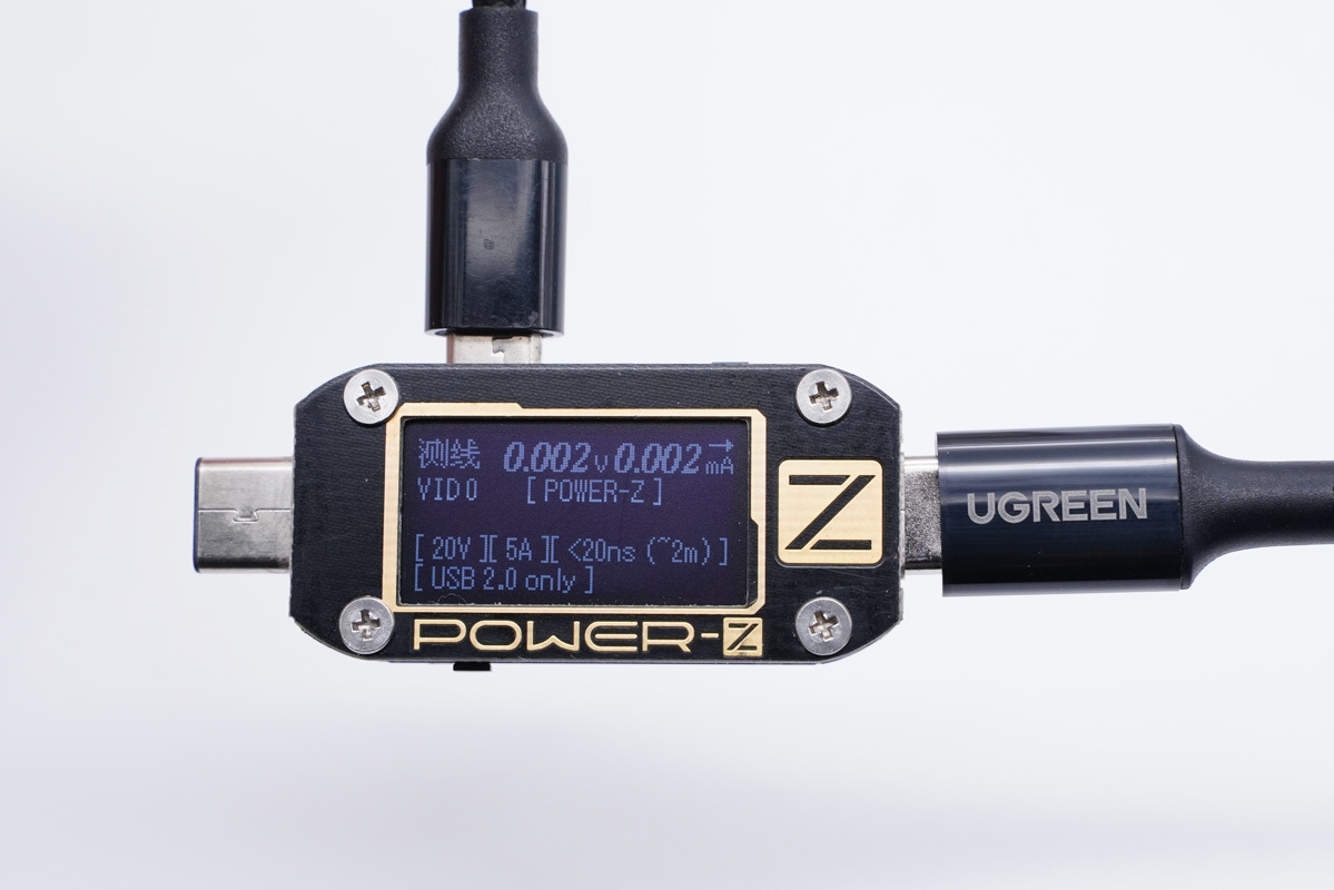 使用POWER-Z KM001C实测线材支持20V5A 100W的充电功率,此外线材还支持USB2.0的数据传输。
