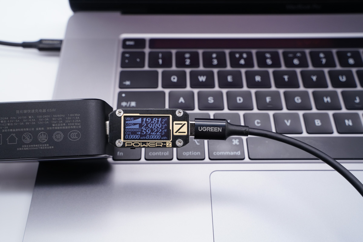 因为充电器支持65W快充,已经可以为笔记本电脑快充,但为了更好的发挥出充电器的性能,所以此次增设了为MacBook Pro 16充电全程的测试。