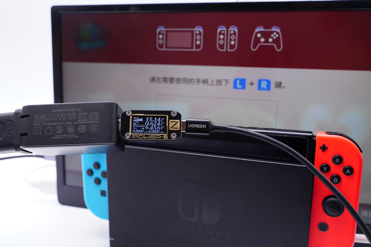 因为支持15V3A快充档位,实测可以成功激活Switch的底座TV模式,充电器输出15V电压。