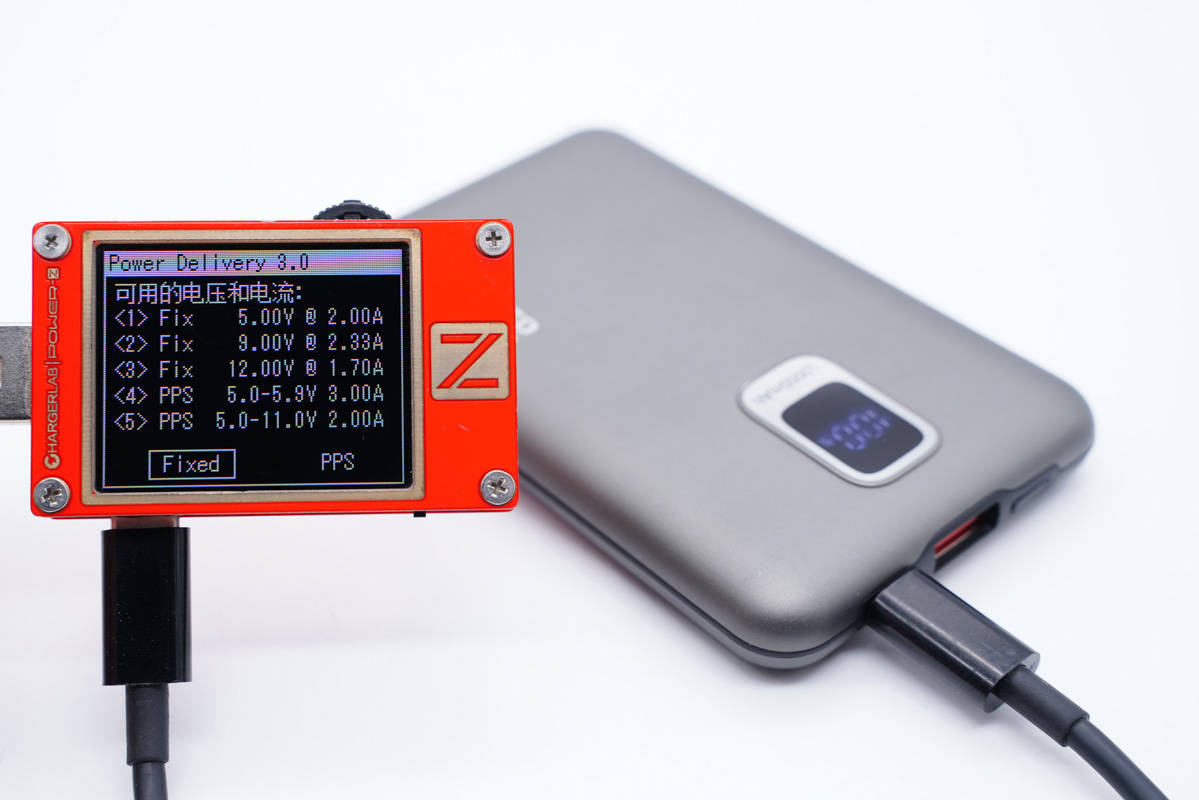 使用KT002测得USB-C口支持QC2.0/3.0、AFC、FCP、SCP、PE2.0、PD3.0和PPS快充协议。