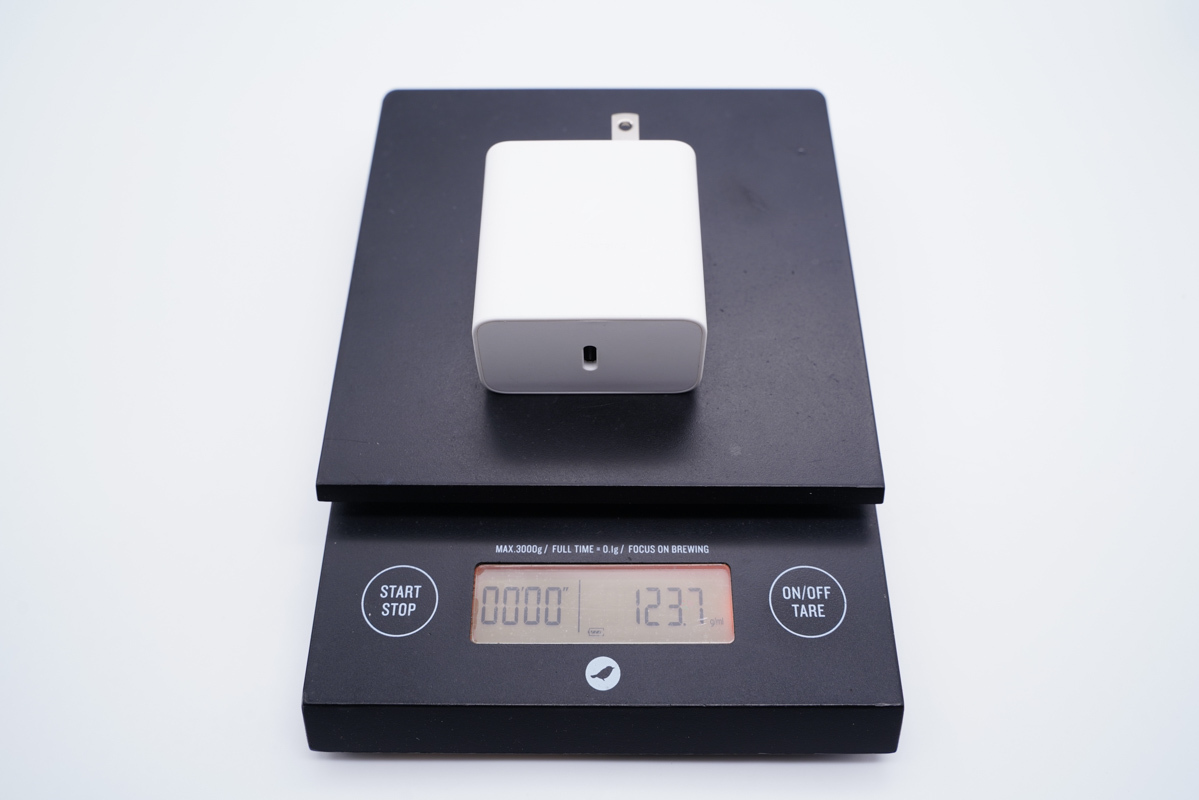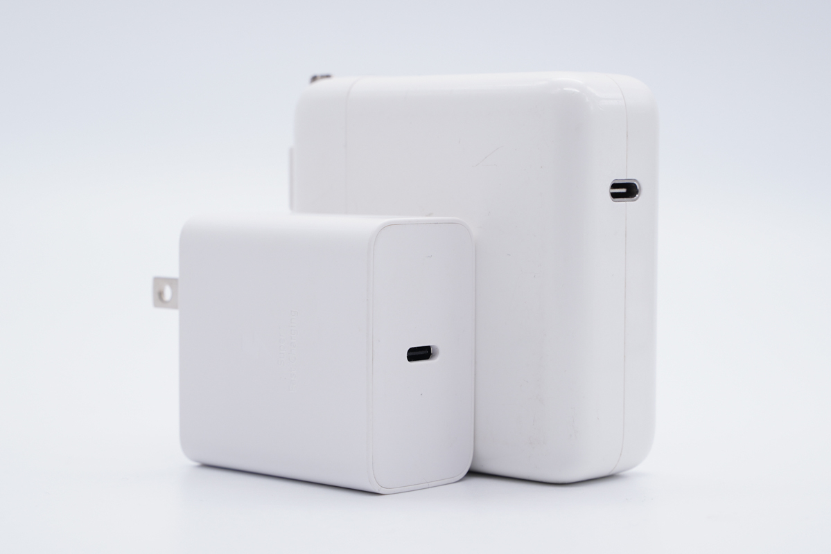 整体要比苹果61W充电器还要小很多。
